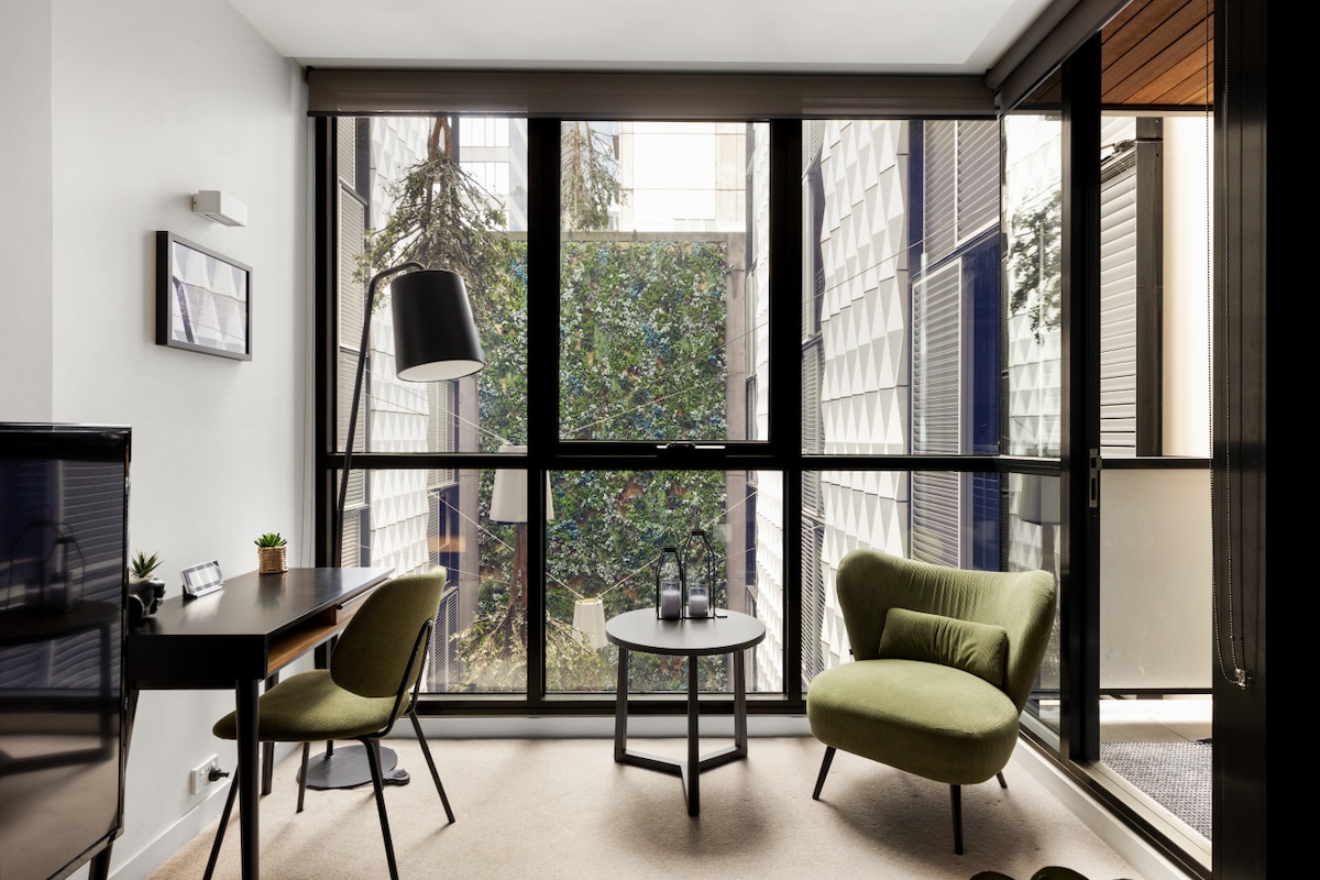 Admire the city lights from the patio of this stylish studio. This relaxing, minimalist space has been renovated with care, and designed with ultimate comfort in mind. Some of our favourite features - All amenities provided — including toiletries Amazing natural light and fresh air (block out curtains too though!) You can walk just about anywhere in the CBD, Southbank and throughout gorgeous Carlton, home of the iconic Exhibition Buildings and gardens - which we are directly opposite! 4 major supermarkets within walking distance, along with pharmacies This huge studio is a short stay apartment - no one lives there and it is specifically set up for guests to have the most enjoyable stay. Fully equipped, including a welcome goody basket upon arrival, and a guest guide book full of our top tips to get the most out of your visit to the area. With a deco inspired entrance, wrought iron gates and solid brick exterior, it is one of the few residences from this era that remain in Melbourne. Our studio is set up for guests with all the kitchen and bathroom amenities you need to make your stay easy and enjoyable. It has just been fully refurbished (largely by us!) to make it as comfortable and convenient as possible. Features - - huge, fully stocked kitchen with all utensils, as well as condiments, spices, tea and coffee - private walk in robe/dressing room area all bathroom items included - fresh towels, body wash, shampoo and conditioner - loads of storage space for all of your belongings - designed for guests - coin laundry on same floor (washing liquid, clothes airer and basket provided) - secure car space - sofa bed sleeps additional 1-2 people and can be made up on request - inside living area - Myki cards provided for public transport, only top up required - balcony area with seating and city views - full blockout curtains so you aren’t woken by the morning sun unless you want to be - high speed internet - windows with city views -gym on site - it is being refubished in future so we haven’t listed it as a 'feature' due to it’s age, but the equipment is in good condition - a high chair, portcot and bouncer can be made available upon request - please note the apartment is on the second floor and without childproofing so people may want to take this into consideration when booking -Please note this is a studio apartment - hotel style living where the bed is situated in the main living area. We live a few minutes away and love to meet and greet our guests and give them the inside scoop on the area, as it's our neighbourhood. There is a lockable keybox however, so if this isn't your preference you can just check yourself in and enjoy the peace and quiet. We are available easily if needed, and happy to help any time during your stay. All the apartments face the outside so you have your own private entrance and security door within the premises. The car space is located within the grounds and is accessed with an electronic fob. The apartment is located on the 2nd floor and can be accessed via lift or stairs. There is a caretaker on premises each day for any additional needs. **Scroll to the bottom of this page for a full description of the neighbourhood and getting around! We aim to meet and greet our guests whenever we can, and we are just a few minutes away if needed. We don’t live in the complex, so you have privacy, peace and quiet. We are always a phone call/email away if needed and happy to help. There is a full guest guide inside the studio featuring our recommendations on the best places to eat, drink and visit during your stay. Carlton is one of the best places to stay in Melbourne. It epitomises everything about Melbourne culture, with amazing cafes, markets, gardens, and restaurants right on the doorstep. It is moments away from the bright lights of the city centre. You can walk to the city centre in a few minutes. From the centre there are trams, trains and buses to take you anywhere in Melbourne. There is a bike hire stand directly across the road in front of the Exhibition Buildings. Free parking is on site if you have a car. Uber and Taxi services will be on your doorstep in minutes. This is a beautiful quiet building on the edge of the city and we appreciate the co-operation of our guests in respecting our neighbours during their stay by keeping the noise down. The studio is in a double brick building with windows on every side, so the temperature is always very comfortable. The ceiling fan with reverse heat function is all we have needed so far.