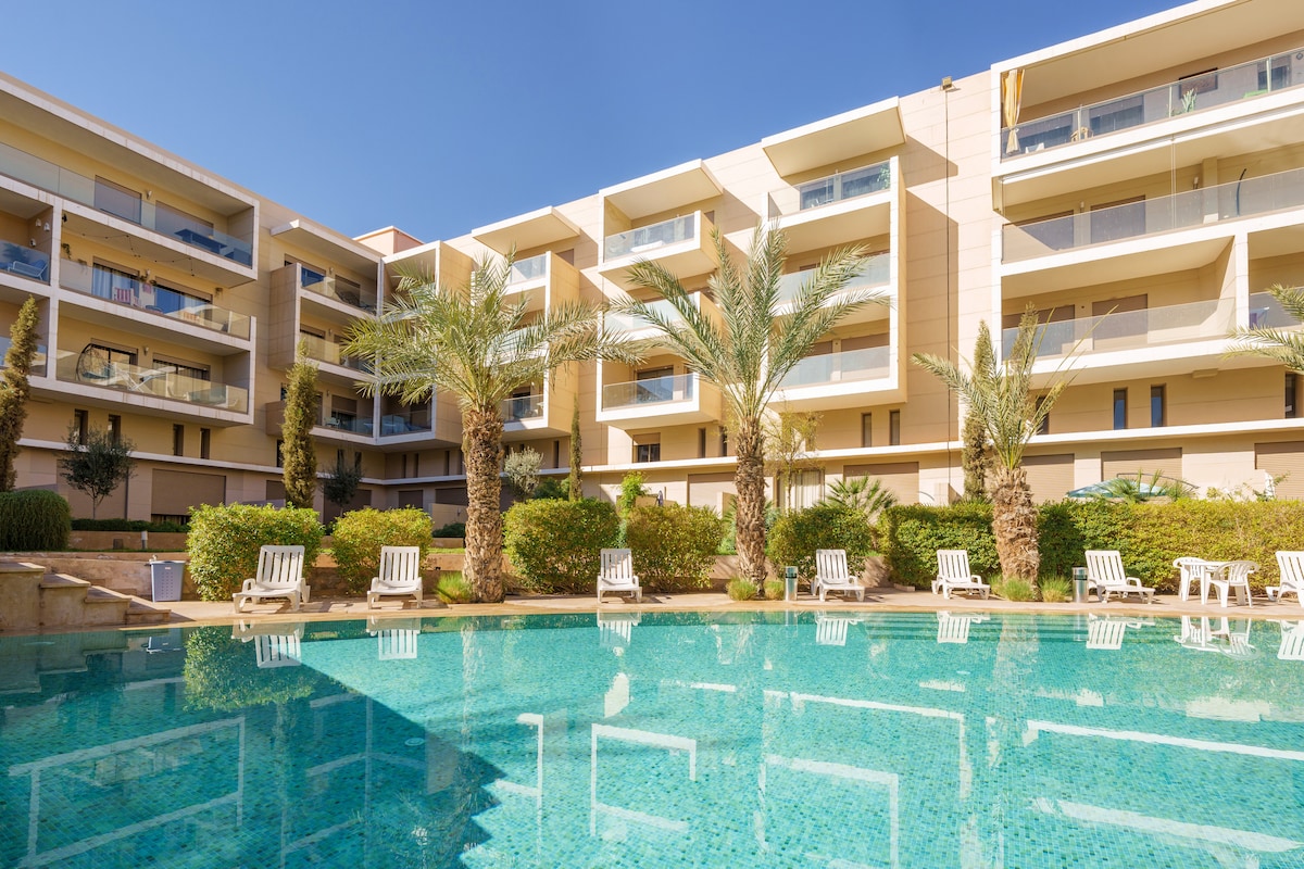 Wamkelekile kwiflethi yethu enegumbi lokulala elinye elinepuli, apho zonke iikona zinombane omhle. Ifumaneka embindini weGueliz, uhambo lwemizuzu nje eyi-10 ukusuka eCarré Eden ibe yimizuzu eyi-5 uhamba ngeenyawo ukusuka kwisikhululo sikaloliwe, uza kuba kwindawo entle yokubuka iivenkile zokutyela, iivenkile zokutyela neevenkile ezininzi. Yonwabela ukuhlala ngaphandle kweengxaki ngeintanethi enesantya esiphezulu, i-IP TV neNetflix. ISATIFIKETHI SOMTSHATO SIYAFUNEKA KWISIBINI SASEMOROCCO OKANYE UKUBA ESINYE SESI SIBINI SISIMOROCCO.