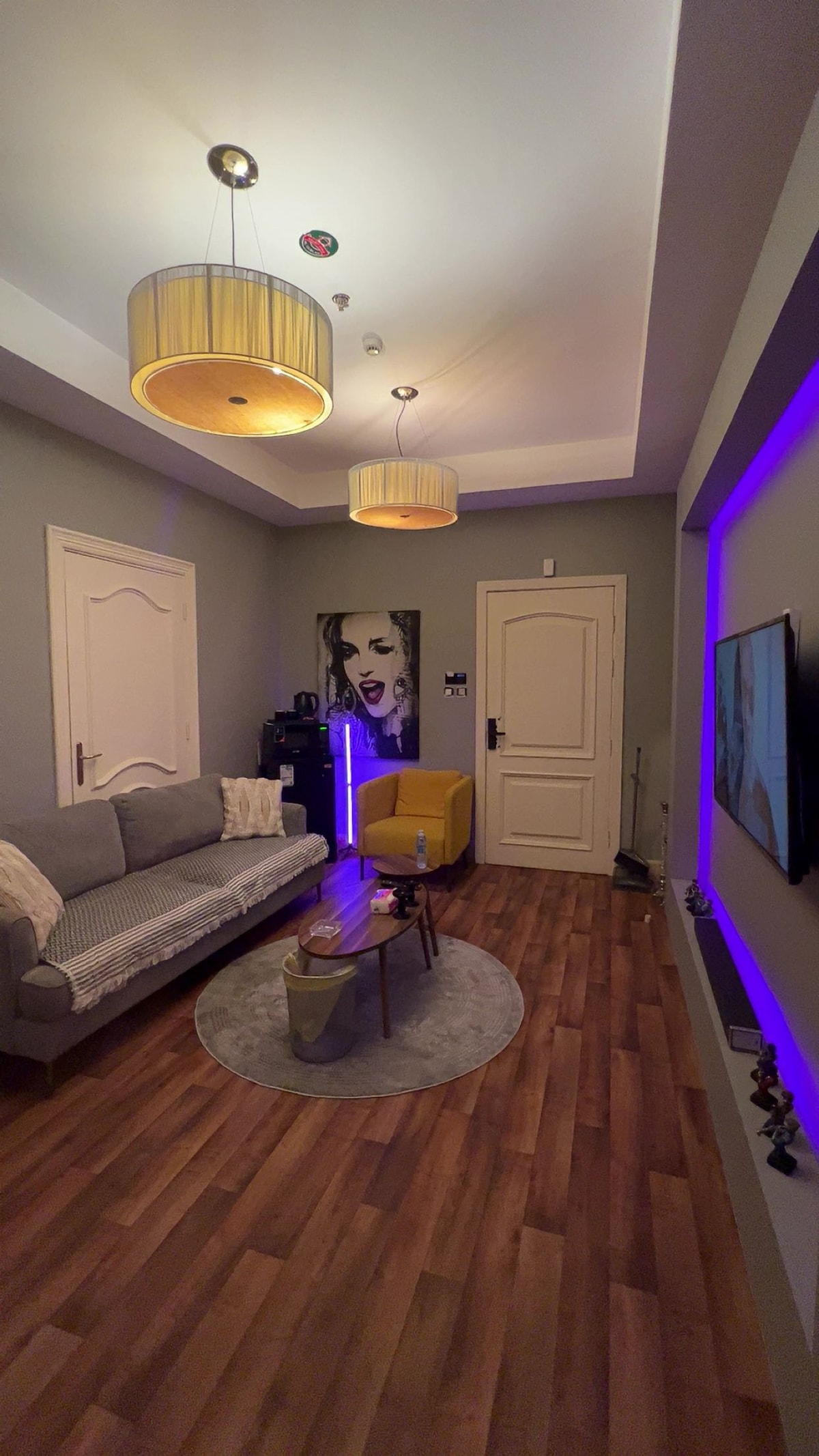 Phola kule ndawo yale mihla nenomtsalane - Iflethi enendawo yokuphumla enendawo yokuphumla, igumbi lokulala elikhulu, ikona yekofu negumbi lokuhlambela elipheleleyo.. Inesikrini esiphucukileyo se-intshi eziyi-70 esinokubhalisela iNetflix nokubukela i-VIP ne-IPTV ukuze wonwabele imidlalo, iimuvi, kunye neengqungquthela kunye ne-intanethi ekhawulezayo yasimahla. Inendawo ekufutshane nazo zonke iinkonzo nakwezona ndawo zintle zesixeko saseJeddah . UHayakum Allah, iindwendwe zethu ezikwikhaya lakho lesibini