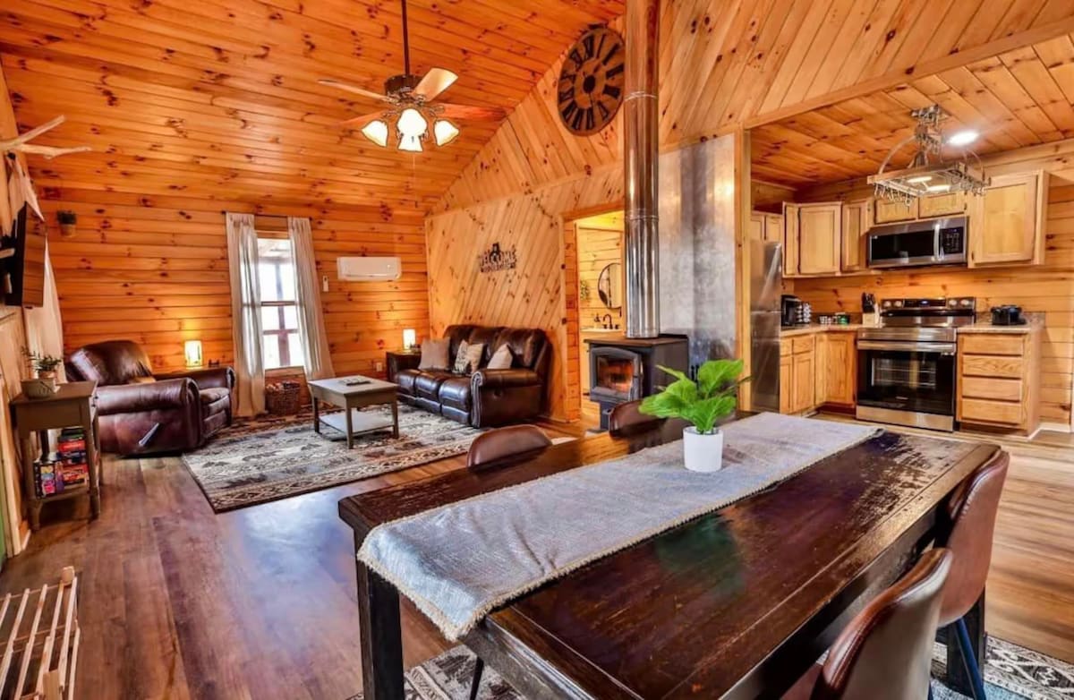 Indlu yethu yamaplanga enemigangatho eyi-3 ilala lula abantu abayi-10. Kwi-acre yethu engamashumi amabini, kukho iindawo zokungena eziyi-5 nemiqolomba emibini evulekileyo kwi-State Park gorge, kunye neebhokisi ezininzi kunye neengxangxasi zokubuka. Enoba uyazonwabela iibhulorho ezinkulu zemvelo ze-State Park, ukhenketho lomqolomba, ukukhwela ihashe, ukuqubha, ukuloba okanye ukuhamba ngephenyane kwiSmoky Lake okanye kwiTygarts Creek, indawo yethu yokuqesha indlu yamaplanga esecaleni kweCliffside yindawo entle yokuphumla nokubuka.