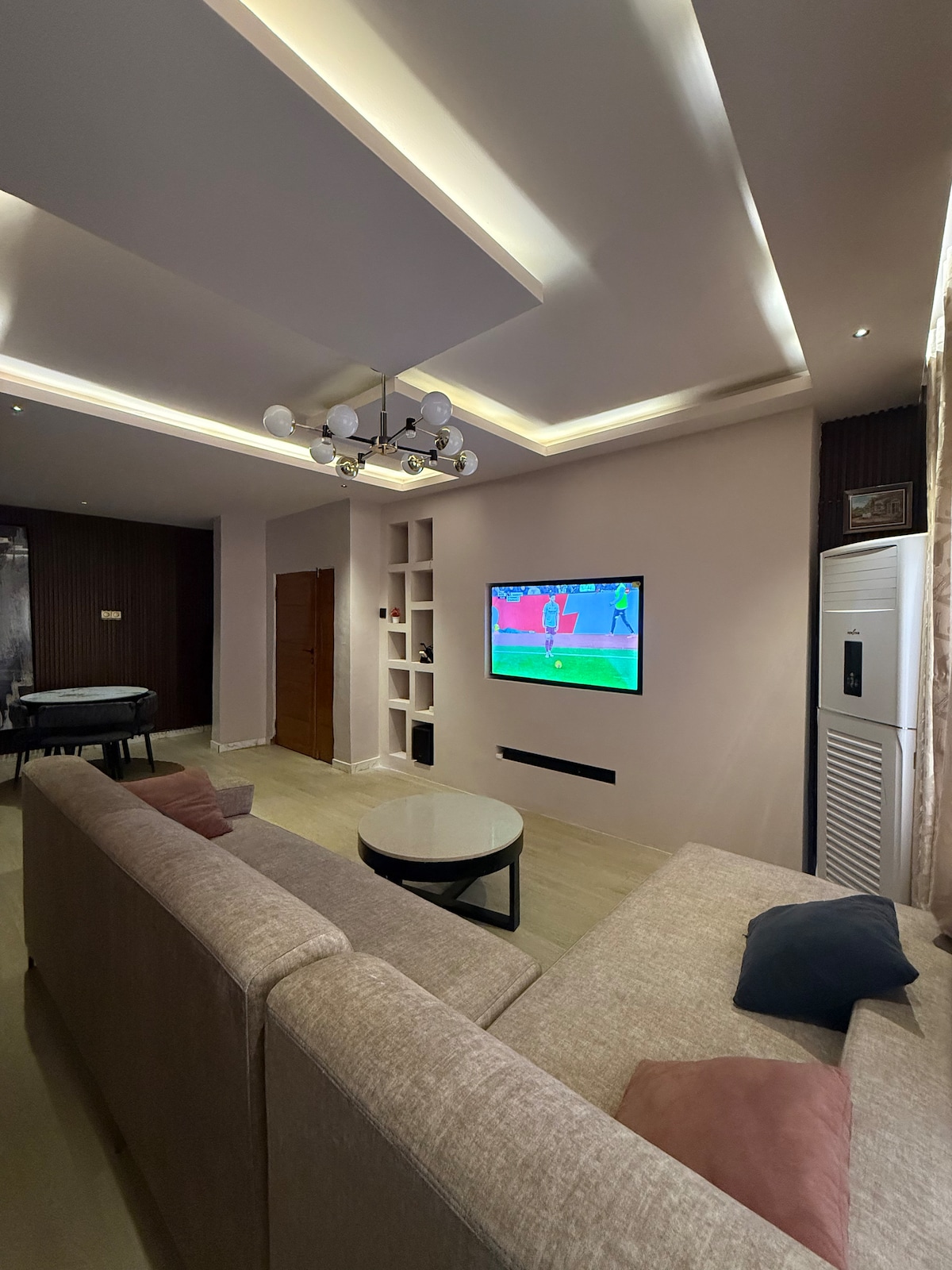 Iflethi entsha enamagumbi okulala ayi-2 eseIjegun, eLagos (eNigeria). Le flethi inethelevishini eyi-45inch, i-DSTV, ii-air conditioner kumagumbi okulala/kwigumbi lokuhlala kunye neefeni ezongezelelekileyo. Kukho i-2.5KVA x3 inverter kunye ne-8KVA generator (iindleko ezigqunywe ziindwendwe) Iflethi ifumaneka imini nobusuku, indawo ekhuselekileyo. NCEDA UNGABHUKISHELI UNDWENDWE OLUYI-1. BHUKISHA NGOKWENANI LEENDWENDWE 'EZIHLALA' KWIFLETHI OKANYE KWINDLU EKWICOMPLEX SUKU NGALUNYE. (UBUNCINANE BEENDWENDWE EZIYI-2). Enkosi.