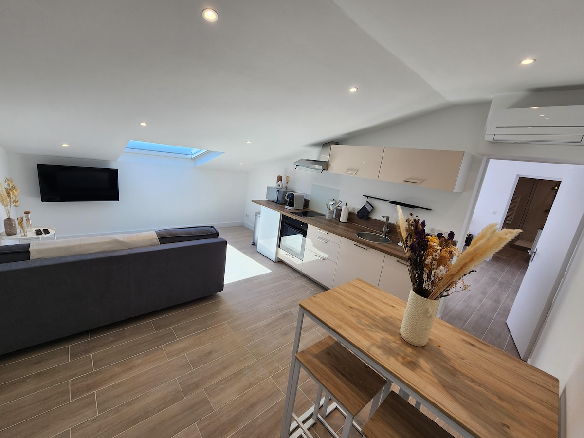 Istudiyo esihle kakhuluse-26m ² esilungiswe ngoJuni 2020. Le flethi ifumaneka lula embindini wesixeko saseGenoese saseAjaccio ibe ifikelela kwisitrato sabantu abahamba ngeenyawo. Ikumgangatho wesithathu ofumaneka ngekheshi. Le ndawo ilungele yonke into ngeenyawo nangebhasi. Kubantu abahambayo, iindawo ezimbini zokupaka (ezimele zibhatalwe) zikumgama ongaphantsi kweemitha eziyi-200. Kufuphi neendawo eziphambili, iilwandle kunye nezitrato ezimnandi zaseAjaccio, unokonwabela ukuhlala kwakho.