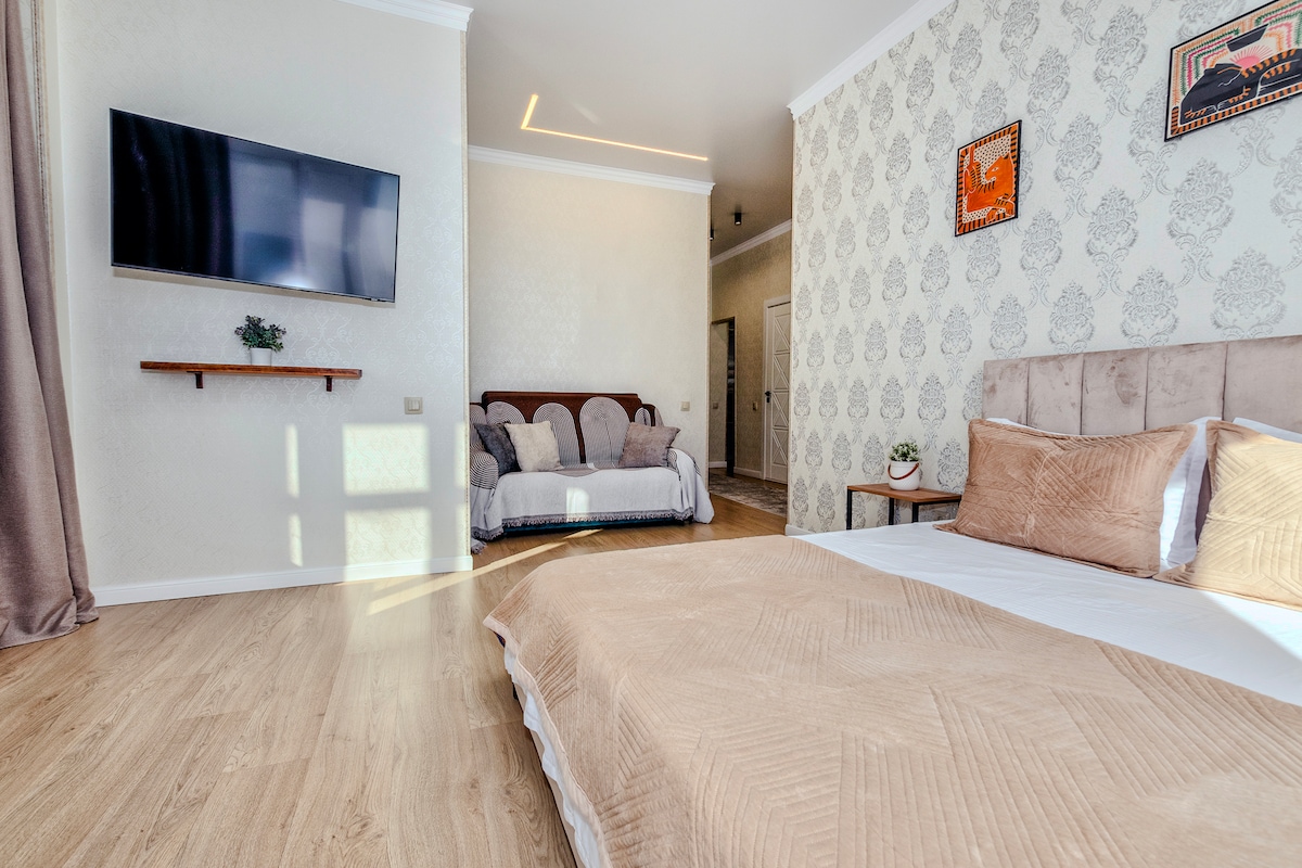 Остановитесь в стильном жилье с высоким уровнем безопасности (камеры видеонаблюдения, охрана, ресепшн) недалеко от самых интересных достопримечательностей, делового центра столицы, с возможностью прогуляться в Ботаническом саду в шаговой доступности. На территории апарт- отеля имеется кофейня, кофе аппарат, SPA, фитнес клуб, салон красоты, продуктовый магазин, кондитерская, рестораны, в том числе ресторан казахской кухни, бар, клуб, кальянная. Бесплатная парковка, зарядка для электромобилей.