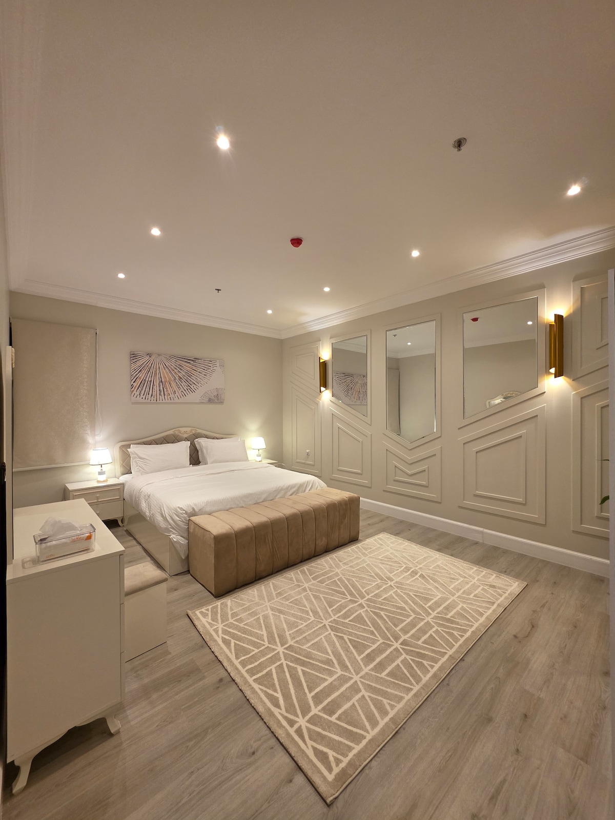 Iflethi ekumgangatho ophezulu enegumbi lokulala, igumbi lokuhlala elinesikrini esiphucukileyo nekhitshi elincinci Le flethi ikwindawo eyahlukileyo kwisithili saseAl-Wassam phakathi kweAl-Shafa neal-Hadha nesalamane sakhe neAl-Radf Park