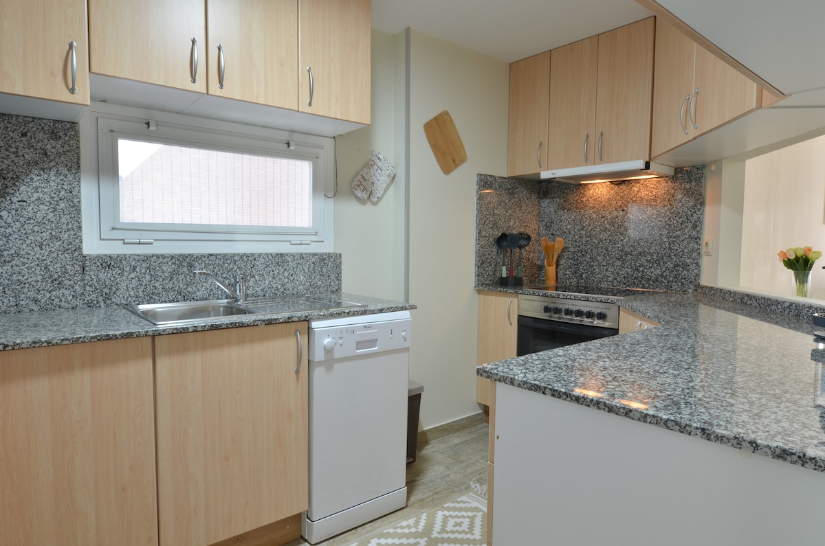 Iflethi okanye indlu ekwicomplex etofotofo nenento yonke. Inomatshini okhupha umoya obandayo okanye oshushu (oshushu/obandayo) kwigumbi lokuhlala ibe inamagumbi amabini okulala, igumbi lokuhlambela eliyi-1, ikhitshi elinento yonke, igumbi lokuhlala elivulekileyo kunye ne-8M terrace eneentaba ezintle. Indawo ethe cwaka enepuli nebala lentenetya labucala, ukungena simahla ejimini. I-WiFi yasimahla. Izilwanyana zasekhaya zivumelekile (kungekhona iikati).