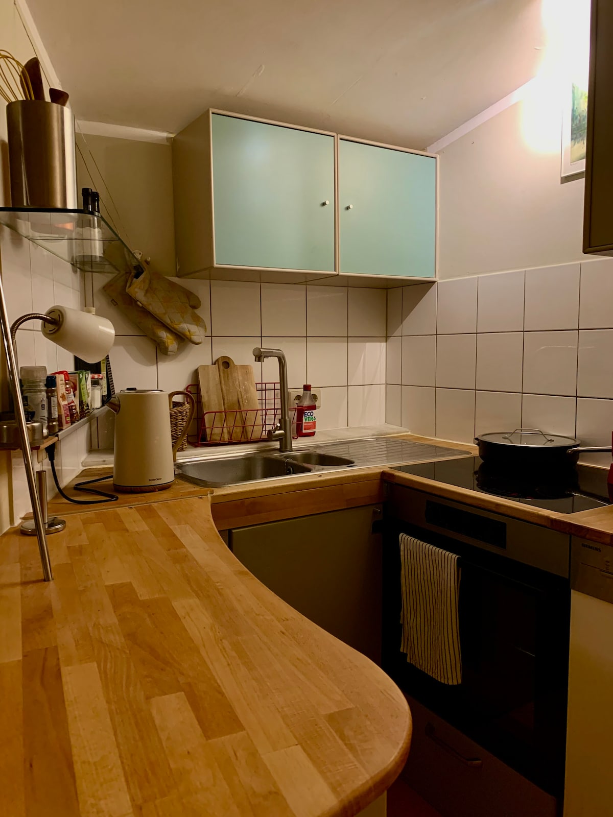 I-Tübingen sisixeko seyunivesithi, ngoko indlu yethu eseSchönblick yindlu yabafundi. Apha, kumgangatho ongaphezu kwemibini, abafundi bahlala kwiiflethi ezisetyenziswa ngumntu wonke, kumgangatho ophantsi kukho ababuki zindwendwe. Iflethi ekwigumbi elingaphantsi yiflethi ekumgangatho ophezulu, ekhanyayo nenefenitshala enegumbi eliyi-1 elineemitha zesikwere eziyi-36, igumbi lokuhlambela elivulekileyo negumbi lokuhlambela elitsha, elinezinto ezipheleleyo nezinento yonke. Ukusuka kwipaseji yeflethi, iingcango zamagumbi angaphantsi/inkqubo yokufudumeza iyacima. Ngoko ke ipaseji akufuneki itshixwe.