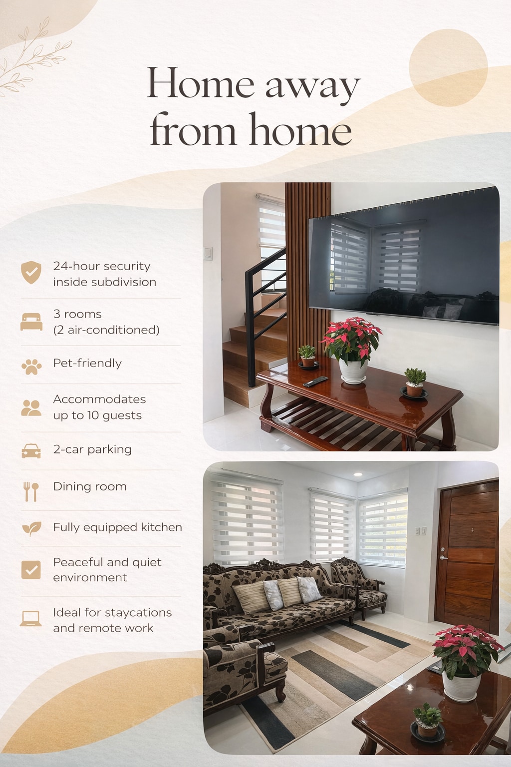 Indawo ✨ Yakho Yee-resort Nemicimbi eAngat, eBulacan ✨ Phuma esixekweni uze wenze iinkumbulo ezingalibalekiyo kwiindawo zethu ezitofotofo zasemaphandleni — Uxolo, uphefumlelwe yindalo, kwaye ujikelezwe ngamasimi erayisi, kunye nomtsalane wegadi yakudala- i-resort yethu yenzelwe ukucotha, ukudibana kwakhona nokubhiyozela awona maxesha mahle ebomini nabantu ababaluleke kakhulu. Nokuba ulapha ukuze ube nexesha elimnandi lempela-veki okanye itheko elikhoyo, indawo yethu yeyakho ukuze uyonwabele, ngokukhethekileyo nangabucala.