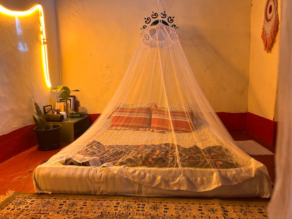 🌞Indlu iYelloMello: apho ilanga nolwandle zidibana noxolo. Le ndawo ithambileyo, eyamkelayo izilwanyana zasekhaya, ine-1BHK enegumbi lokulala eline-AC, indawo yokuhlala etofotofo, i-Wi-Fi ekhawulezayo enomatshini omncinci wokugcina umbane, nekhitshi elinezinto ezifunekayo eUpper Mandrem Village, eNorth Goa, ekwiikhilomitha eziyi-3 ukusuka elwandle. Vuka kwiingoma zeentaka nelanga, funda iincwadi zethu📚, uye elwandle ukuze 🏖️ ubone iiyure ezintle, upheke 🍳okanye wonwabele iigigi neevenkile zokutyela. Ukuze wenze okanye unqumamise nje, siyakumema ukuba uphole ngesantya sakho. Akukho ndawo yokugcina umbane yendlu.🏡