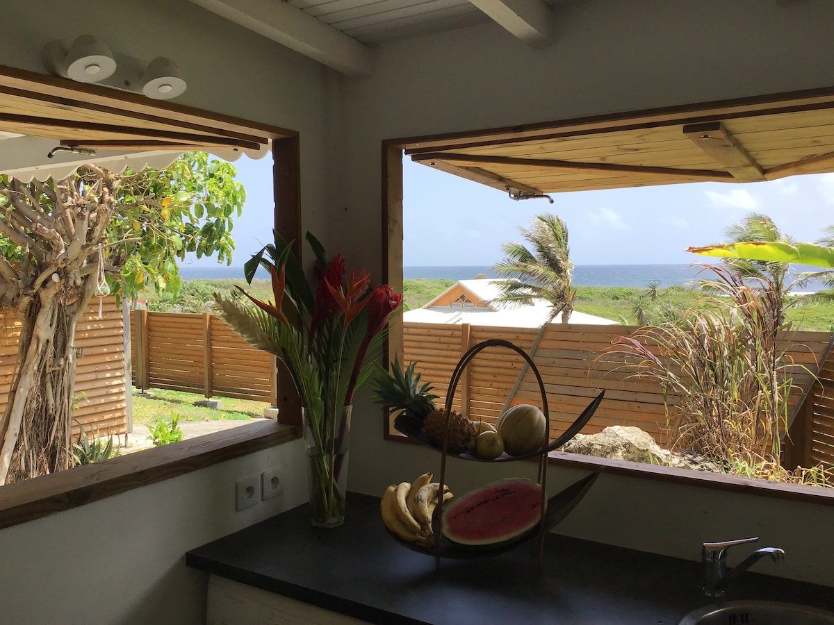 Fumana indawo yokuhlala ekhethekileyo noxolo enombono omhle woLwandle lweCaribbean Imizuzu nje eyi-4 uhamba ngeenyawo usuka elunxwemeni lwe-Anse des Rochers, istudiyo esinomoya otyhefayo esingu-25 m2 esine-terrace yokujonga ulwandle eyi-180 °: iholo yokungena, indawo yokulala enebhedi yeesentimitha eziyi-160, iTV eyi-42 ", igumbi leshawa elineWC, indawo yokuhlala enesofa, ikhitshi elinomatshini wokuhlamba iimpahla. Itanki lamanzi, iWiFi, izinto zebhedi, indawo yokupaka ekufutshane. Ibheji + ii-bracelets ezinikwa abantu abahamba ngeenyawo ukuya elunxwemeni lweDomaine de l 'Anse des Rochers