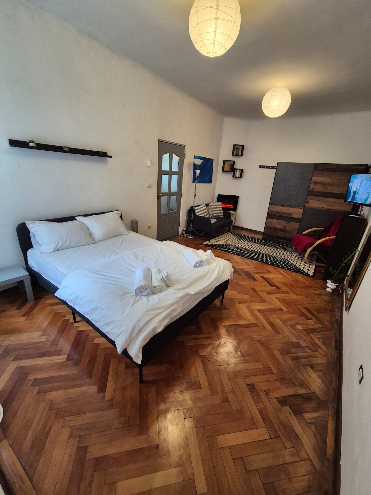 This elegant and cosy property is located in the historical downtown. The entrance is reached through a lush green yard, so you can enjoy an oasis of tranquillity right in the city centre. The apartment has been recently renovated. It has a unique vibe, a stylish design, and spacious rooms. There is an inviting living room, an intimate bedroom, a huge kitchen, a bathroom, and a hallway. This is the perfect choice for travelers who want to stay in the heart of the city while enjoying privacy.