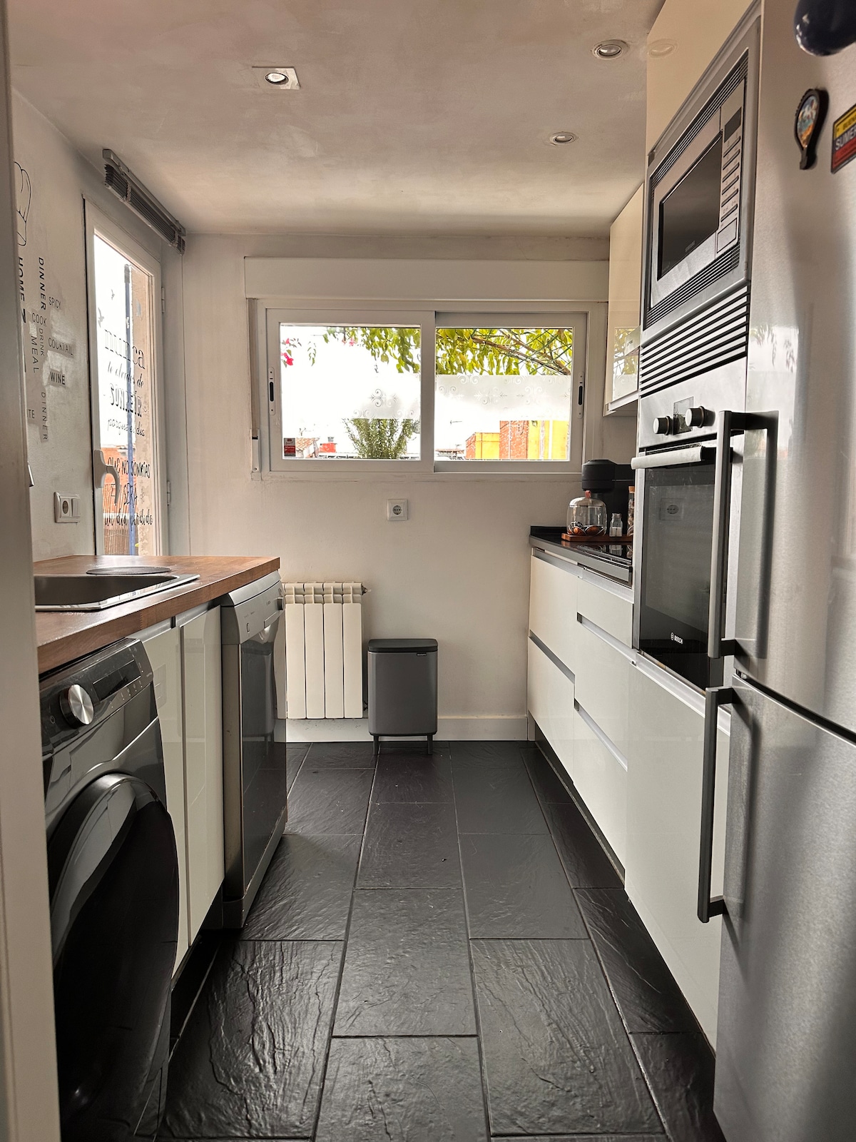 Iflethi ethi “Vine” isembindini weMadrid, ngaphandle kweGran Via, kwisitrato esithuleyo kwisakhiwo esitsha esinelifti. Yinto ephefumlelwe indalo, eqaqambileyo kwaye yale mihla, ine-WiFi, ixhotyiswe ngokupheleleyo kwaye isondele kakhulu kwiivenkile zokutyela, i-tapas, iMetro, iivenkile kunye neegalari. Ilungele umntu omnye, izibini okanye izibini ezinomntwana! Izilwanyana ziyamenywa ngovuyo!!! Le flethi ifumaneka kwindawo entsha, inelifti! Yenziwe yale mihla, inezinto ezininzi eziluhlaza, zifakwe kwigama layo, Vine. Ifestile enkulu ekwindawo ekwicomplex yonke ijonge igadi entle yabucala. Le flethi inegumbi lokulala elinebhedi elala abantu ababini, indawo yokuhlala enesofa enye, ikhitshi negumbi lokuhlambela. IneWiFi kwaye inazo zonke izinto ezidingekayo, kuquka umatshini wokuhlamba impahla, iTV, umatshini okhupha umoya obandayo okanye oshushu, kunye nomatshini wokwenza ikofu weNespresso - zonke zilungele nje ukuba uthi zava kwaye wonwabe! Le flethi yindawo evulekileyo yestudiyo - ibe yeyakho yonke into onokuyonwabela! Akukho ndawo kwiflethi okanye indlu ekwicomplex ongenakuyisebenzisa okanye ukuyisebenzisa! Siyakuthanda ukubuka iindwendwe, kodwa siyazihlonipha izinto eziyimfihlo zeendwendwe zethu! Sikhona ukuze sikuncede kangangoko ufuna! Ifumaneka nje eGran Via kwindawo entle yaseMalasana kunye neekhefi zayo zokwenyani, ii-tapas kunye neebhari. I-Kuge Zara Primark & Mango ikumgama wemizuzu. Iindawo eziphambili zaseMadrid ezifana neRoyal Palace, iPuerta del Sol & Museums zikumgama wokuhamba ngeenyawo I-Central Metro Station Gran Via yimizuzu eyi-2 ukusuka kwiflethi. Ukusuka apho ungathatha i-metro ukuya naphi na apho ufuna khona eMadrid kwaye nazo zonke izikhululo zikaloliwe eziza kukukhupha eMadrid ukuya kwiSpeyin. Ukuba uza ngemoto, indawo enkulu yokupaka iseBarco 1, eMadrid, kumzuzu nje omnye ukusuka kwiflethi. Kukho nesikhululo sebhayisekile esikufuphi. Ikiti yamanzi, isoda, ubisi, ikofu, iti kunye nezinto ezimnandi ziza kulindela ukukwamkela :-)