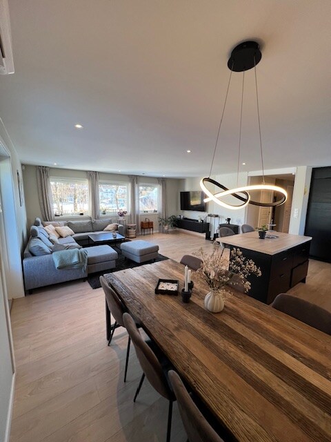 Sørlandshus med god standard. Koselig fjellstue, hagestue og usjenert hage. Solrikt hele dagen. Flere terrasser og med litt sjøutsikt på toppen av fjellet. I tillegg er det trimrom med løpemølle, vektapparater og vekter for de som ønsker å trimme. Mange parkeringsplasser og mulighet for lading av el bil. Huset ligger i en blindvei hvor det er stille og rolig. Solrikt og veldig skjermet for vind. Kun 4 minutter til buss til byen Hele Arendalsuka 50.000,-