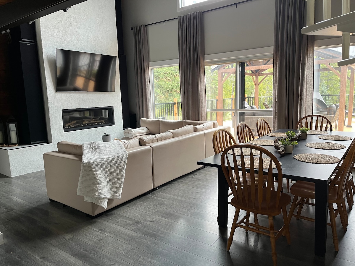 Indawo entsha eyi-3 500 sq. ft. kwiihektare eziyi-8 zomhlaba osemaphandleni. Inamagumbi okulala ayi-5 (ookumkanikazi abayi-4, abantu ababini abayi-1), amagumbi okuhlambela ayi-3.5, umoya ophakathi neWiFi. Ikhitshi elikhulu neendawo zokutyela zenza kube lula ukupheka nokutya kunye. Kukho netafile yepuli, i-satellite TV, kunye nemidlalo yebhodi kunye neepuzzle onokuzonwabela. Ngaphandle, uza kufumana idekhi enkulu enendawo yokuhlala, indawo enkulu yokubraya igesi, ibhafu enamanzi ashushu yamaxesha athile onyaka, nomgodi wokubasa umlilo oneenkuni. Iindawo zokuhlamba iimpahla ziyafumaneka ukuze kube lula kuwe."