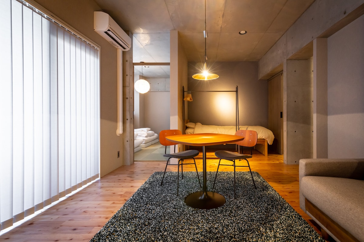 Ruo Yexi house "Room 201", 2 minutes to Osaka Kuromon Market, 3 minutes to Nipponbashi Subway Station. 43m² one bedroom and one living room