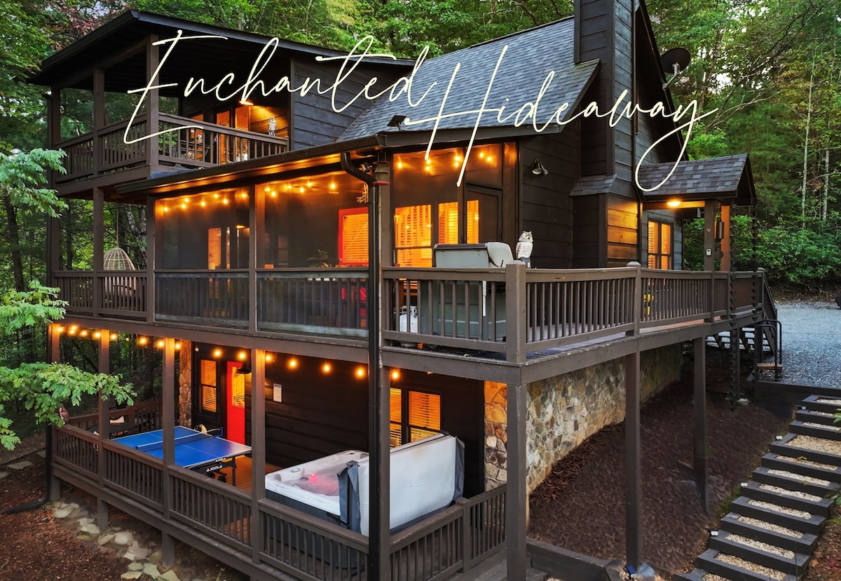 book 3 nights and get 1 free in September- message me to apply offer Welcome to Resting Bear Retreat, where the grandeur of the Blue Ridge Mountains envelops you in its scenic embrace. This exquisite cabin, perched on a hillside and surrounded by the tranquility of tall trees, offers a panoramic mountain tableau that's simply breathtaking. As you step through the doors, a sense of warmth and comfort washes over you. The cabin's interior is a masterful blend of rustic elegance and contemporary a