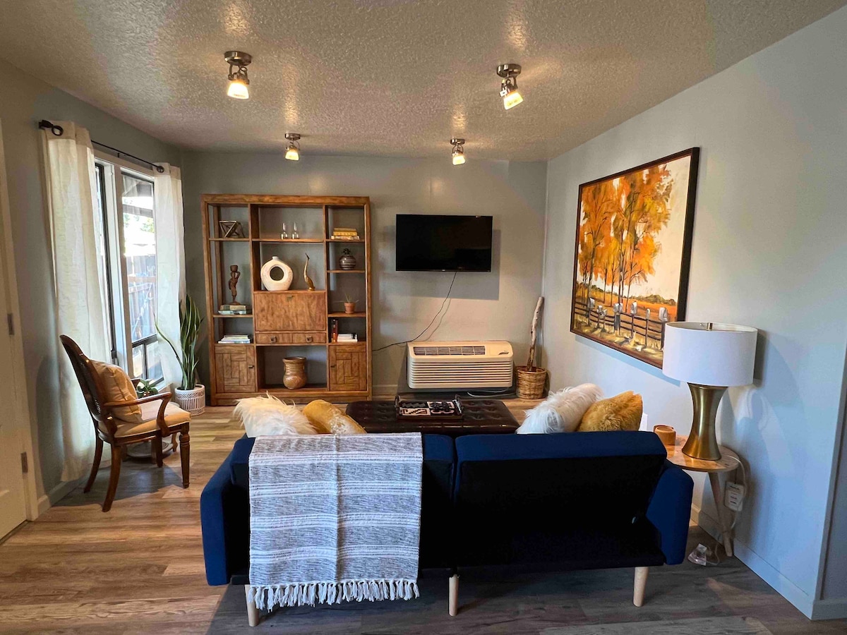 Igumbi elinomnyango ophumela ngaphandle elisandul 'ukuhlaziywa (elinekhitshi) kwindawo enembali. Indawo yokungena yabucala, enezinto ezihonjiswe kakuhle zale mihla. Ine-smart TV ne-smart lock zonke ezikonektwe kwi-intanethi. Nceda ungazisebenzisi izilwanyana zasekhaya. Kulula kakhulu ku-I-5, ilungele abahambi kunye nexesha eliphakathi. Ilungele onesi abahambahambayo. Qhakamshelana nam ukuze ufumane izaphulelo! I-Grants Pass nendawo ekuyo intle, ikumzantsi wentaba, kwaye ikwiibhloko ezimbalwa kuphela ukuya kwidolophu. Ibhafu enamanzi ashushu negumbi lokuhlambela iimpahla yeyondwendwe.