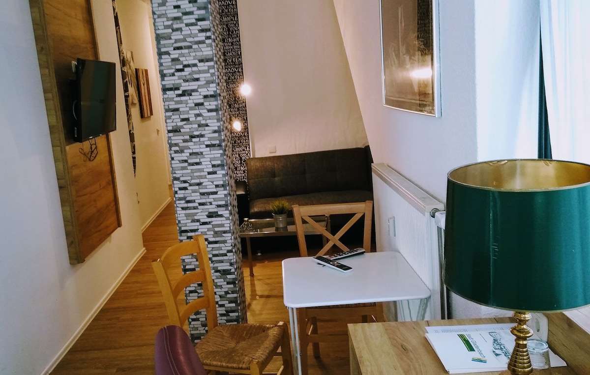 Iflethi encinci entle, ekhanyayo esembindini, iimitha eziyi-100 kuphela ukusuka e-Elisabethkirche, enayo yonke into oyidingayo. Ibhedi etofotofo eneebhodi zentloko ezinokutshintshwa ngombane, ikhitshi elincinci, igumbi lokuhlambela lasemini. Indlu ethe cwaka kakhulu kwindawo esembindini. Nayiphi na into efunekayo kubomi bemihla ngemihla xa uhamba ngeenyawo okanye ngaphandle komnyango. Iivenkile zokutyela neebhari ezikwiindawo ezininzi ezingaphandle komnyango. Iflethi okanye indlu ekwicomplex engatshayi