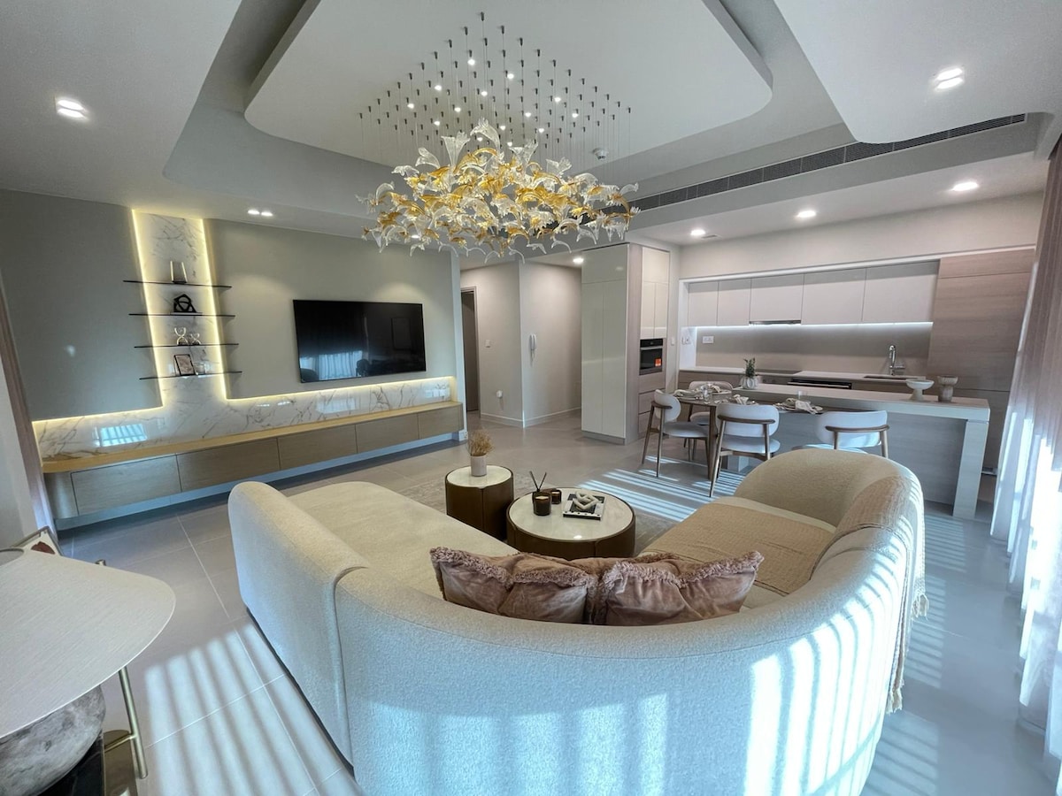 Enjoy modern living with stylish furnishings and city/sea views and private Balcony. The flat location near shops, variety of restaurants, transport & nightlife The flat features - All long stay equipment (coffee machine, toaster, kettle, ironing set, hair drier, vacuum machine) - Fully equipped kitchen with all basics - All bathroom needs - Smart TV and high-speed Wi-Fi Full access to all amenities - Workspace - Swimming pool - Fitness center - Sauna - Parking - Squash court - 24/7 security