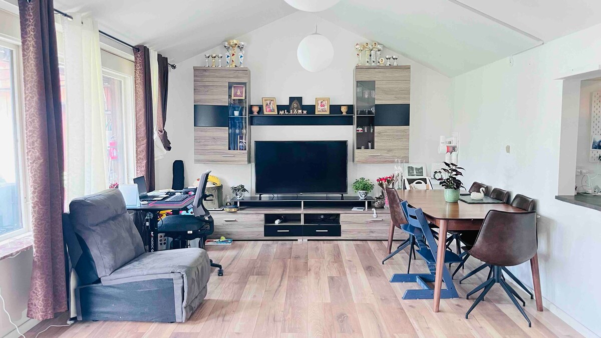 Wamkelekile kwindlu yethu enendawo yokuphola ekwindawo ezolileyo kufutshane nehlathi nendalo. Kuba sinegadi evulekileyo, i-terrace enkulu, i-trampoline nebhalkhoni kumgangatho wokuqala, indawo yethu yindawo entle yokuphumla yeentsapho. Le ndawo ihonjiswe kakuhle nezinto ezinokusetyenziswa ezitofotofo ziqinisekisa ukuba ziza kuhlala kamnandi, ngoxa indawo ekulula ukuhlala kuyo ikwiikhilomitha eziyi-4 ukusuka kwisikhululo sikaloliwe saseS nemizuzu eyi-20 xa uhamba ngemoto usuka eCopenhagen yenza kube lula ukubuka yonke into efumaneka eCopenhagen nakwiindawo ezikuyo. *Ifumaneka kwiintsapho nezibini*