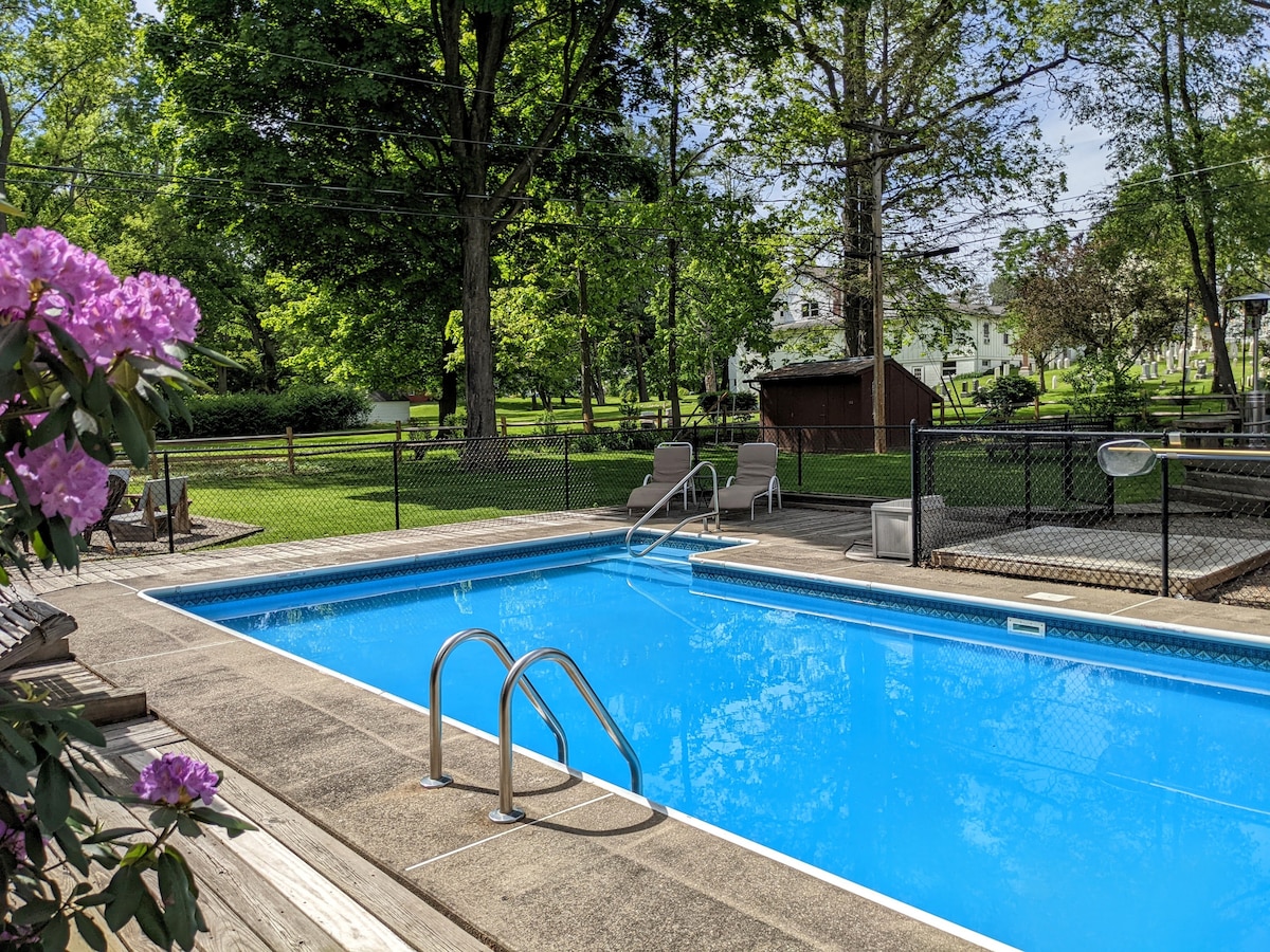 Uvimba ka-1800 owayenguvimba wokuqala kwiRhuluneli uYates Mansion - ngoku ohlala kumgangatho wesibini othe cwaka, othe cwaka we-400 sq. ft "open concept" studio. Idekhi yangaphandle yabucala, indawo yokupaka engaphandle kwesitrato. Iimpawu eziquka i-shiplap ecaleni kweendonga nesilingi, kunye nemigangatho emidala yeplanga. Ikhitshi elinefriji epheleleyo, isitovu segesi, i-microwave, i-toaster, umatshini wokwenza ikofu, izitya, izinto zesilivere, imbiza neepani. Ibhafu epheleleyo eneshawa encinci emileyo. Ibhedi enkulu.