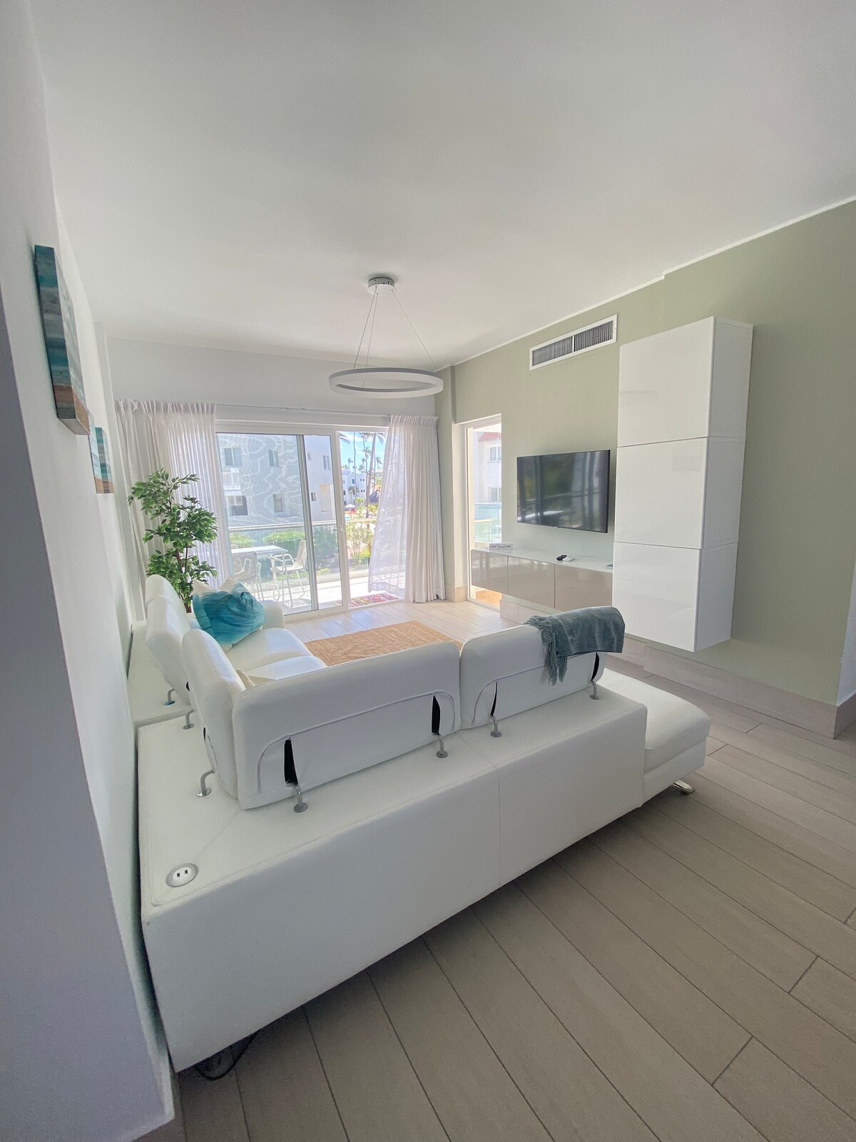 Le ndlu ipentile ekumgangatho we-3 ekumgangatho ophezulu ine-terrace eseluphahleni eyi-1 000 sq ft eneendawo ezintle zaselwandle-izitepsi nje eziyi-40 ezingenazicathulo eziya eBávaro Beach! Yonwabela ibhafu enamanzi ashushu, ingxangxasi, ibhedi yasemini, iindawo zokuphumla, indawo yokutyela, indawo yokosa nesinki, zonke zijikelezwe ngamasundu asetropiki. Ifumaneka embindini weLos Corales, yimizuzu nje eyi-5 xa uhamba ngeenyawo usiya ezivenkileni, kwiivenkile zokutyela, kwiibhari nakwivenkile enkulu. Intsapho ekhuselekileyo emini nasebusuku.