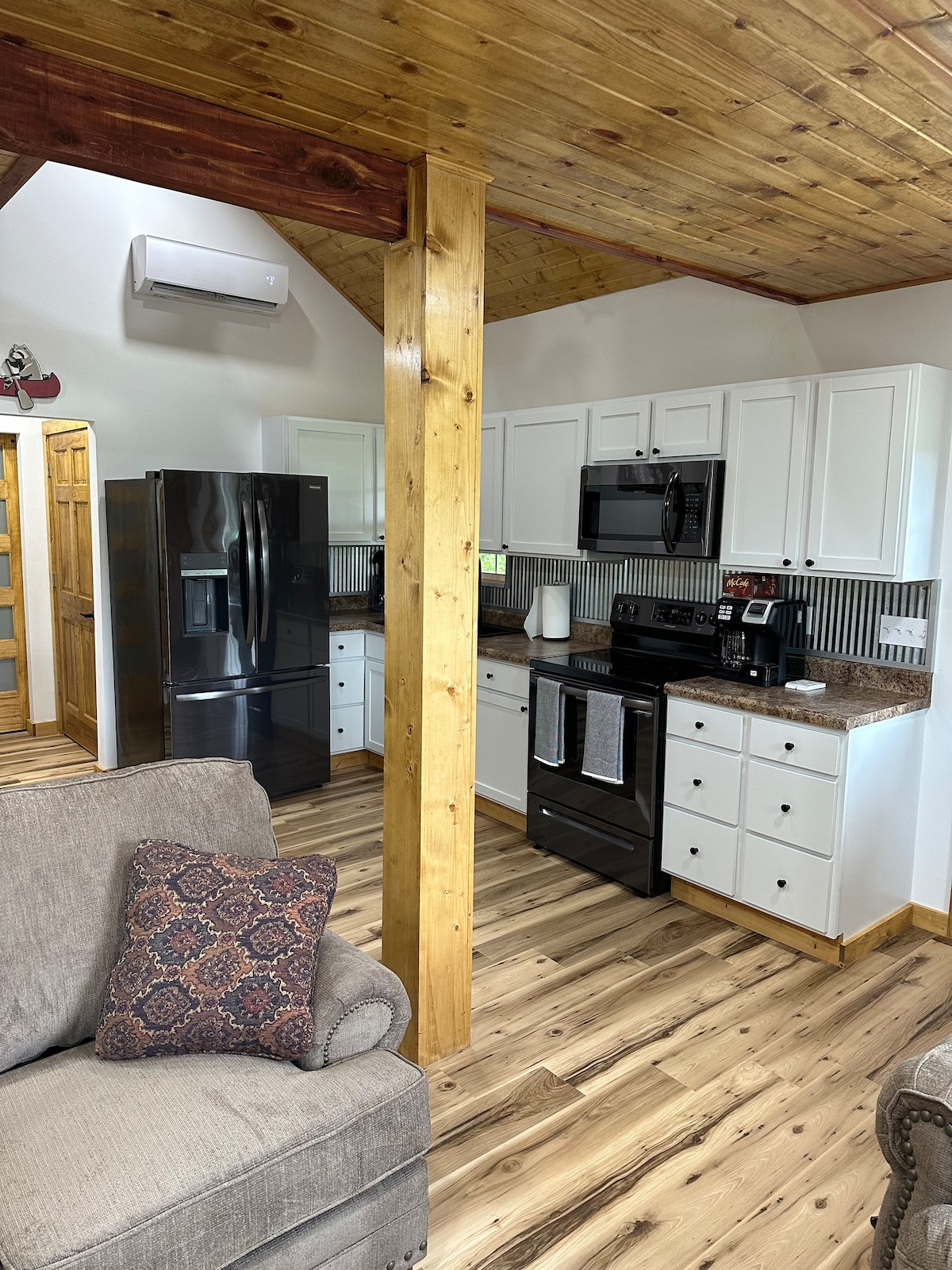 Sinikezela nge-720sq ft. indawo yentsapho yonke. Amagumbi okulala ayi-1 okanye ama-2 aneCOTS ezongezelelweyo, ukuhamba kwiikhabhathi, ukuma ishawa, umatshini wokuhlamba/wokomisa impahla, ifriji, i-microwave, isitovu esipheleleyo/ioveni, imbiza yekofu, iimbiza zokupheka, izitya, i-a/c / ubushushu kwigumbi ngalinye. Yitya ekhitshini kunye ne-Amish eyenziwe nge-dinette. Isofa esongwayo ukuze ibhedi. Ngaphandle komngxuma womlilo ongenawo umsi onokukhetha kuyo. Azivumelekanga izilwanyana zasekhaya Ngaphandle kokuba zivunyiwe