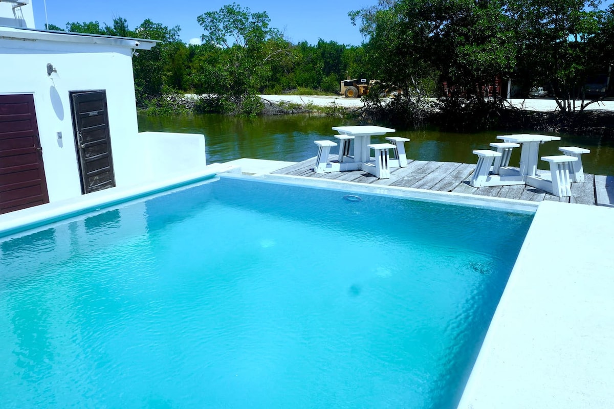 Indlu encinci enegumbi lokulala elinye ekwindawo yeholide eselwandle. Iikhilomitha eziyi-9 kumntla wedolophu yaseSan Pedro kwisiqithi saseAmbergris Caye, eBelize. Ikhitshi elizimeleyo. Ibhedi enkulu enegumbi lokulala elinye enebhalkhoni encinci. Ikhitshi elinezinto ezifunekayo, umatshini we-espresso, iWiFi, ibhokisi yeRoku kwiTV yegumbi lokulala neTV ekwi-intanethi kwigumbi lokuhlala, isixhobo seDVD, isofa enkulu eyibhedi, ibhalkhoni enkulu enefenitshala ejonge ipuli ezintathu nendawo yokuhlala yaseTropiki. Umgangatho wesibini onezitepsi kuphela. Umatshini okhupha umoya obandayo okanye oshushu. Inkqubo yealam yasekuhlaleni enezinto ezilumkisayo emnyango.