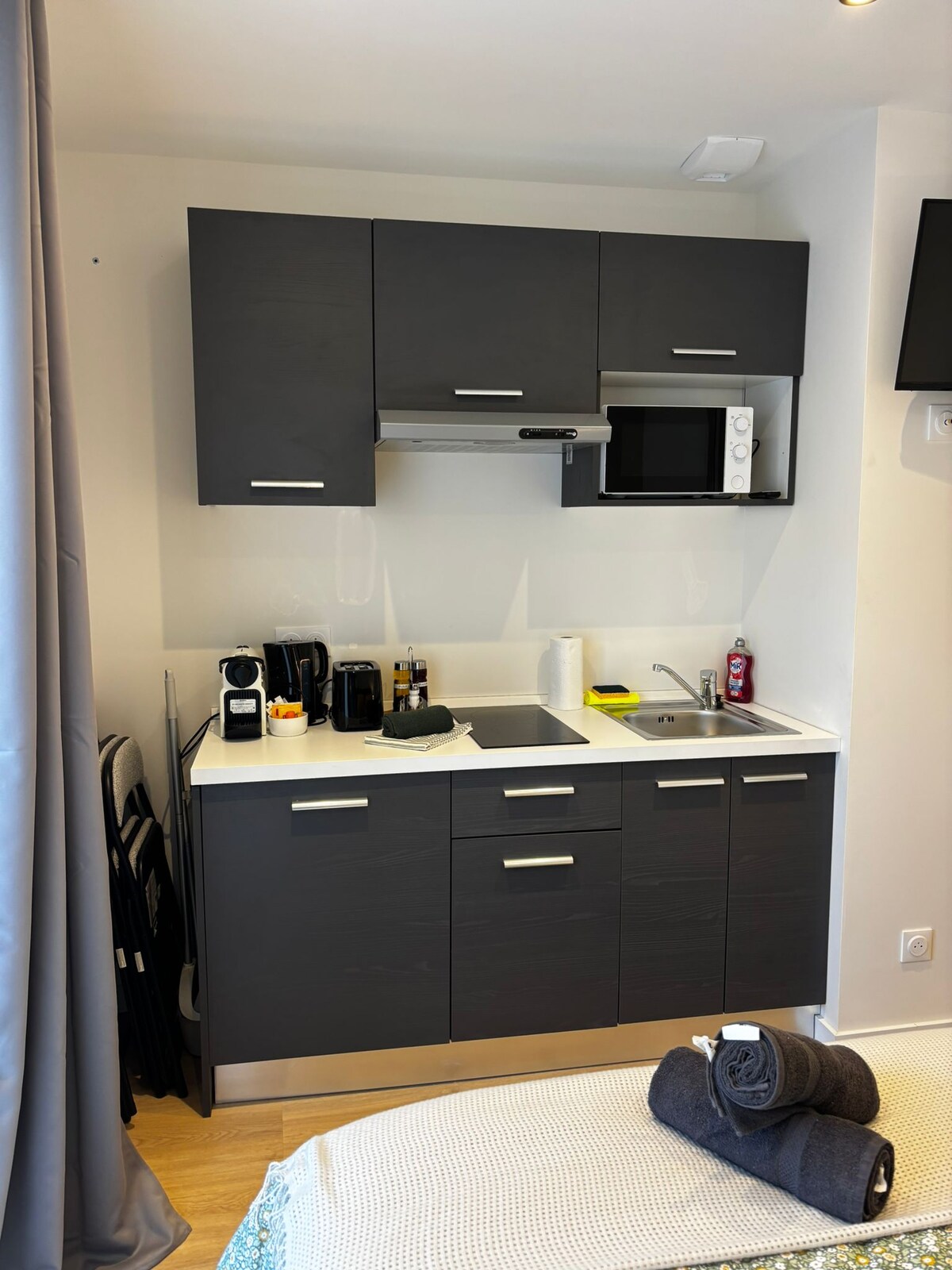 Wamkelekile kwiflethi yakho entle nekhanyayo embindini weVichy! - Iflethi okanye indlu ekwicomplex ehlaziyiweyo eyi-32M2, ilungele abahambi abayi-2. - Ikhitshi elinento yonke, igumbi lokuhlambela elineshawa, iTV ethe tyaba neWifi. - Kufuphi neepaki (imizuzu eyi-1), ivenkile enkulu (imizuzu eyi-2), iOpera, neebhafu ezishushu (imizuzu eyi-5). - Iquka izinto zebhedi zasekhaya (amashiti neetawuli). - Ukuzingenela okubhetyebhetye ngebhokisi yesitshixo. - Indawo yokupaka ephandle yasimahla ekumgama weemitha eziyi-500.