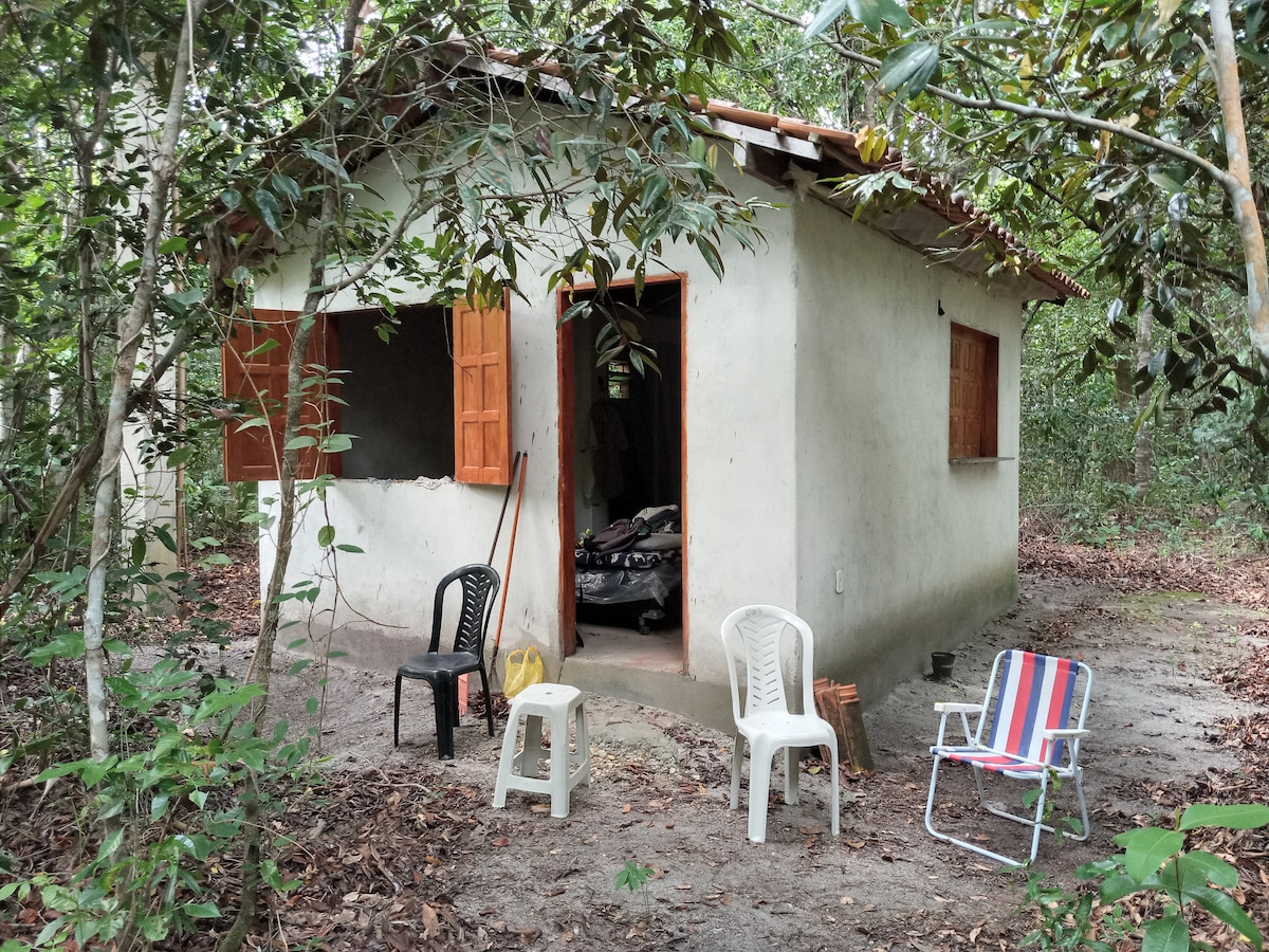 Casa de 20 metros quadrados a luz de vela com banheiro em terreno de 1800 metros quadrados de floresta preservada. Distante 200 metros da entrada da Vila de Santo André. Levar lanterna, velas, repelente, roupa de cama, papel higiênico e aguá para beber.
