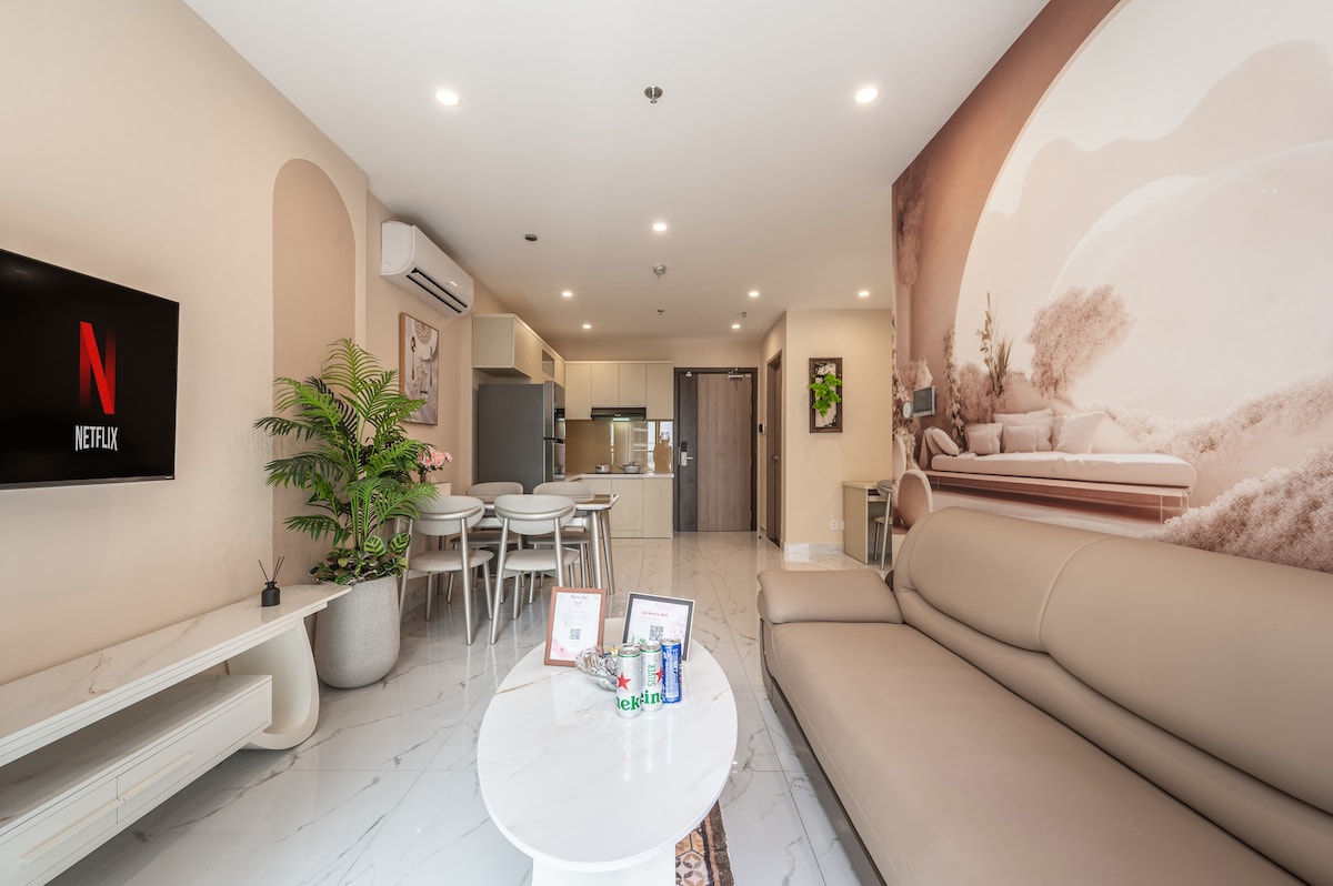 Le ndawo ikhethekileyo yokuhlala inesitayile sakho. Iflethi enombhede omnye, ekumgangatho wesi-4 (Umgangatho wesakhiwo: Kulula ukufikelela kwipuli, indawo yokudlala yabantwana, igadi yeentyatyambo, indawo yangaphandle yokubraya, i-sauna, IJIMU), indawo esembindini wesixeko isoloko yenziwa kwinkomfa, kwezoshishino, kwiintlanganiso zeenkonzo. Kukho ibhasi yasimahla eya embindini weHo Chi Minh.
