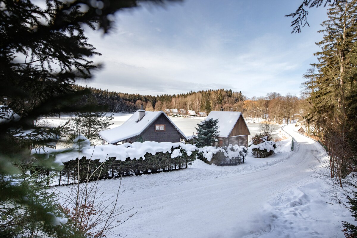 Indlu yeholide eyakhiwe ngamaplanga kwiPovltavské Trail