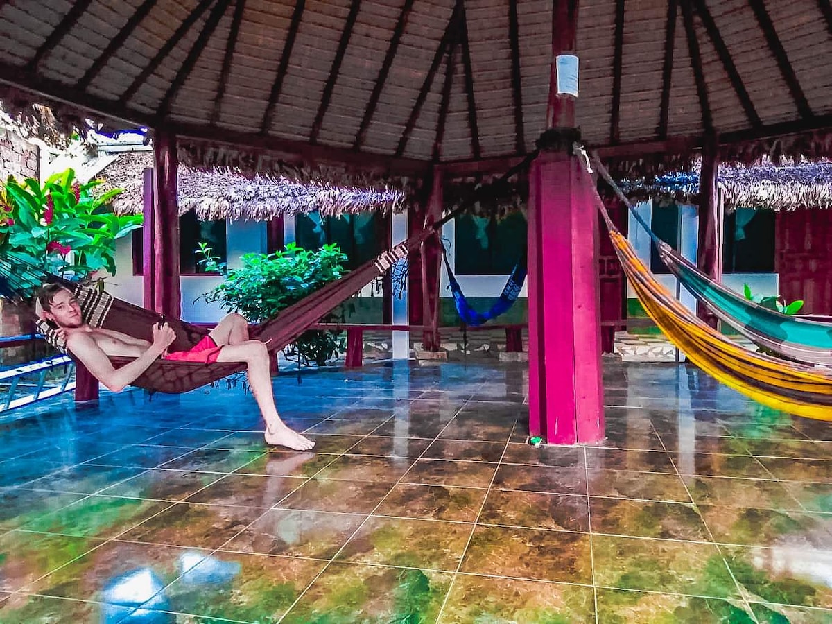 Yonwabela indawo ephezulu ekude kuyo yonke into ofuna ukuyityelela. Ipuli, amaxabiso amahle, umgangatho omhle weenkonzo, ukucoceka nokutofotofo, i-wifi, indawo yeTV, iBar neyure eyonwabileyo, iindawo zokuphola ezinee-hammocks nezaphulelo eziphambili kwiiarhente zohambo neevenkile zokutyela kule ndawo. Abasebenzi abanobubele, abonwabisayo nabanelwimi ezimbini. Yiza ube nexesha elimnandi uze ube nexesha elimnandi! VUSELELA AMANDLA AKHO KWI-AMAZON YETHU!