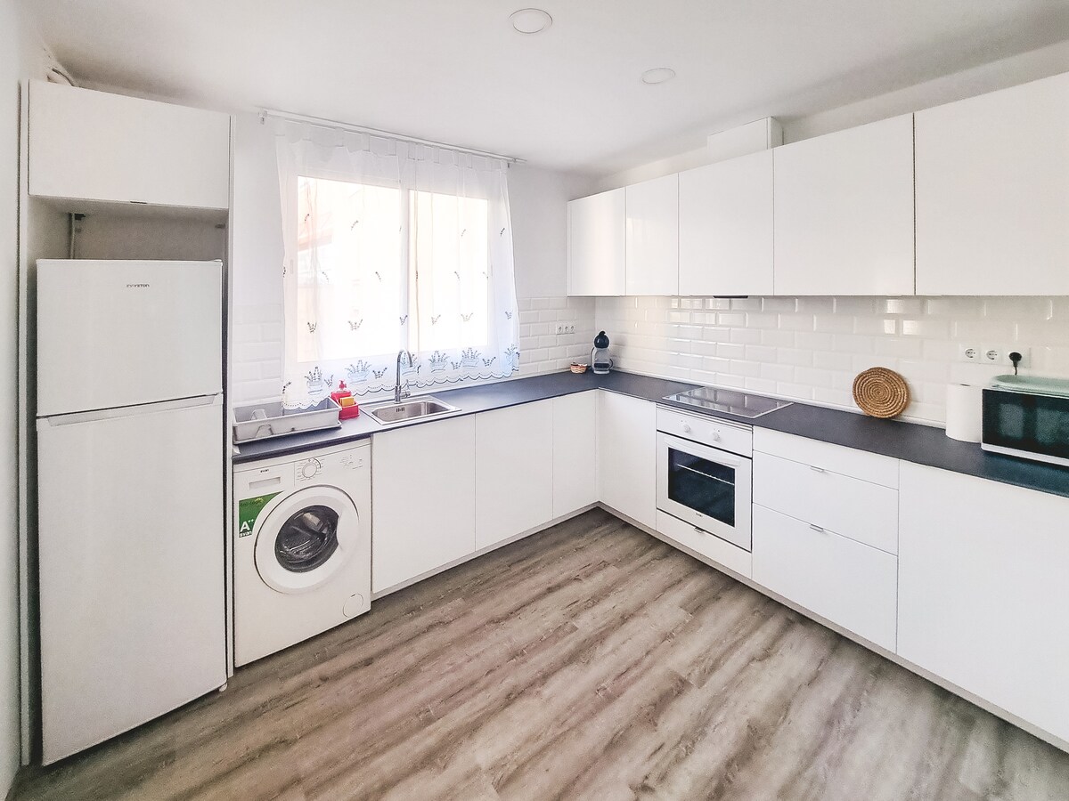 Iflethi okanye indlu ekwicomplex yentsapho ekufutshane nolwandle enendawo yokupaka. Inendawo yokubuka isixeko, i-terrace neWiFi yasimahla, ibe yimizuzu eyi-5 xa uhamba ngeenyawo usiya ePlaya del Morrongo. Yiflethi ekumgangatho wokuqala eyi-100m2 engenayo ilifti, enezinto zonke. Ilungele iintsapho. Le flethi inamagumbi okulala ayi-3, igumbi lokuhlambela eliyi-1, ilinen yebhedi, iitawuli, iTV, indawo yokutyela, ikhitshi nethala elinezinto zonke. Indawo yokupaka iyafumaneka ngezaziso zeeyure eziyi-48.