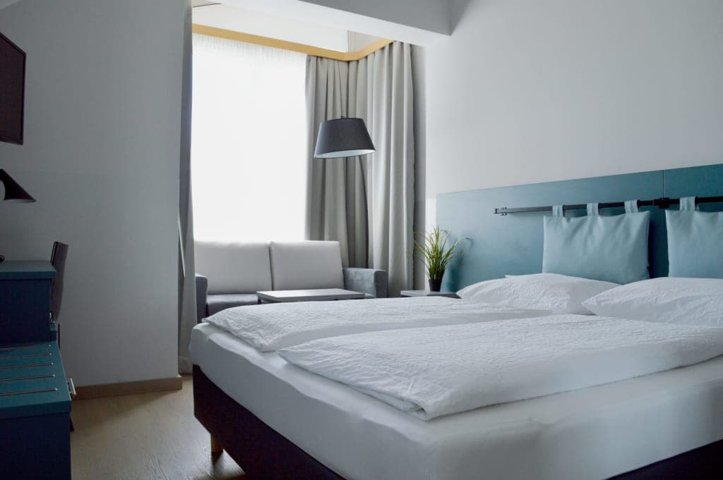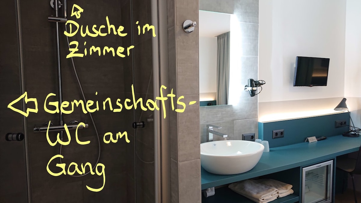 Igumbi elinye elisebenzayo elinendawo encinci yokuhlala nebhalkhoni yomntu omnye, malunga ne-16m² Izixhobo: * ibhedi enye - iisentimitha eziyi-200x90 * ishawa nendawo yokuhlamba edityaniswe egumbini, umatshini wokomisa iinwele, ijeli yeshawa, isepha * iWC eyahlukileyo * 26’ flatscreen TV, W-LAN, clock radio * Ifriji encinci, iketile, i-crockery * ibhalkhoni