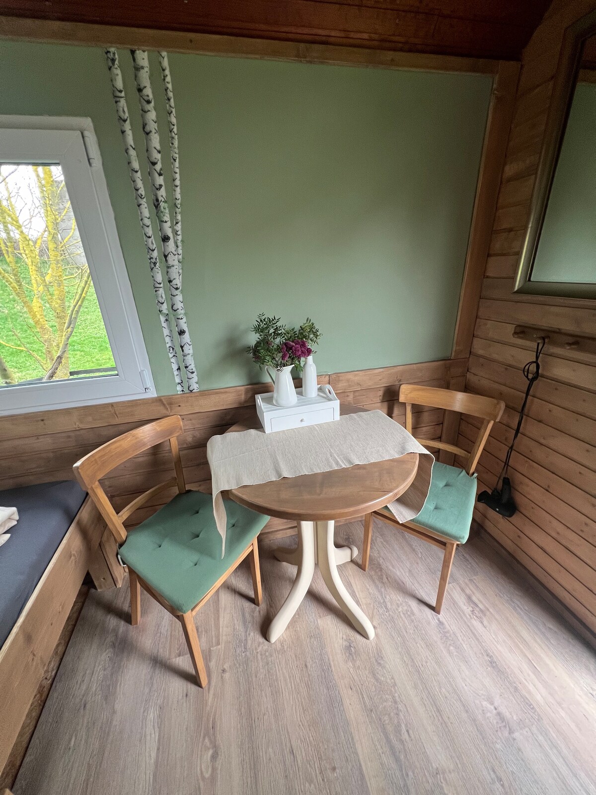 Zingene kwihlabathi loxolo nokuphumla. I-sauna yethu yasekhaya eyenziwe ngamaplanga ikwindawo enendalo entle kakhulu – yindawo yokuphumla eyenzelwe wena wedwa, kude nobomi bemihla ngemihla, ingxolo nokuxakeka. Yonwabela ii-sauna ezipholisayo kwindawo efudumeleyo yamaplanga, emva koko uphumle kwibhafu enamanzi ashushu okanye uzihlaziye phantsi kweshawa yangaphandle - ujikelezwe luhlaza, ukuthula nomoya opholileyo. Indawo enkulu yokuphumla ikwenza ufune ukuphumla, ufunde okanye ungabi nanto uyenzayo. Umzuzu kuphela obalulekileyo apha.