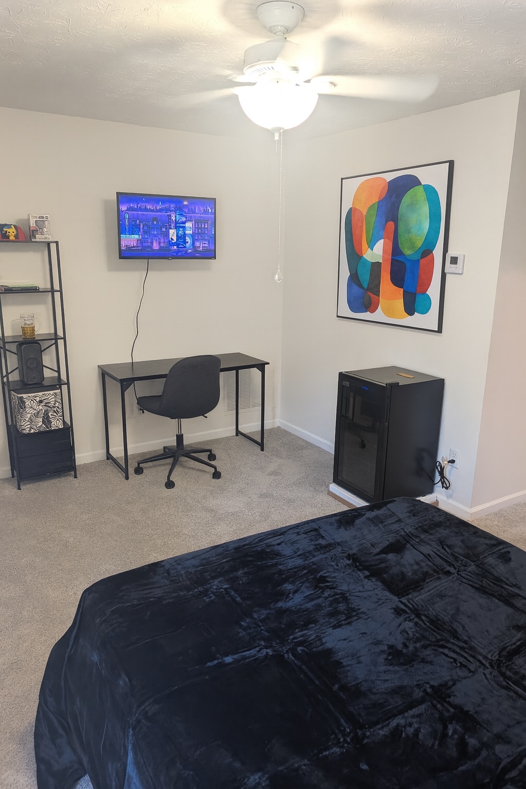 Igumbi lethu leendwendwe linezitshixo zokungena zabucala, ibhafu yakho nezinto ezinokusetyenziswa. Yonwabela uxolo nobuhle balo mmandla uthuleyo nokhuselekileyo, kunye nesitulo esikhulu, i-ottoman, isofa yesikhumba, idesika yokubhala entle, ibhedi enkulu enommandla wokukhumbula kabini, isitulo sokumasaja, kunye neTV enkulu yeRoku (yeNetflix, iAmazon, iHulu, iPrime). Kukho noku: ifriji yakho, ioveni encinci, imicrowave, iKeurig nomatshini wokwenza ikofu oqhelekileyo, iketile yeti nearmoire yaseFransi yokuxhoma iimpahla zakho