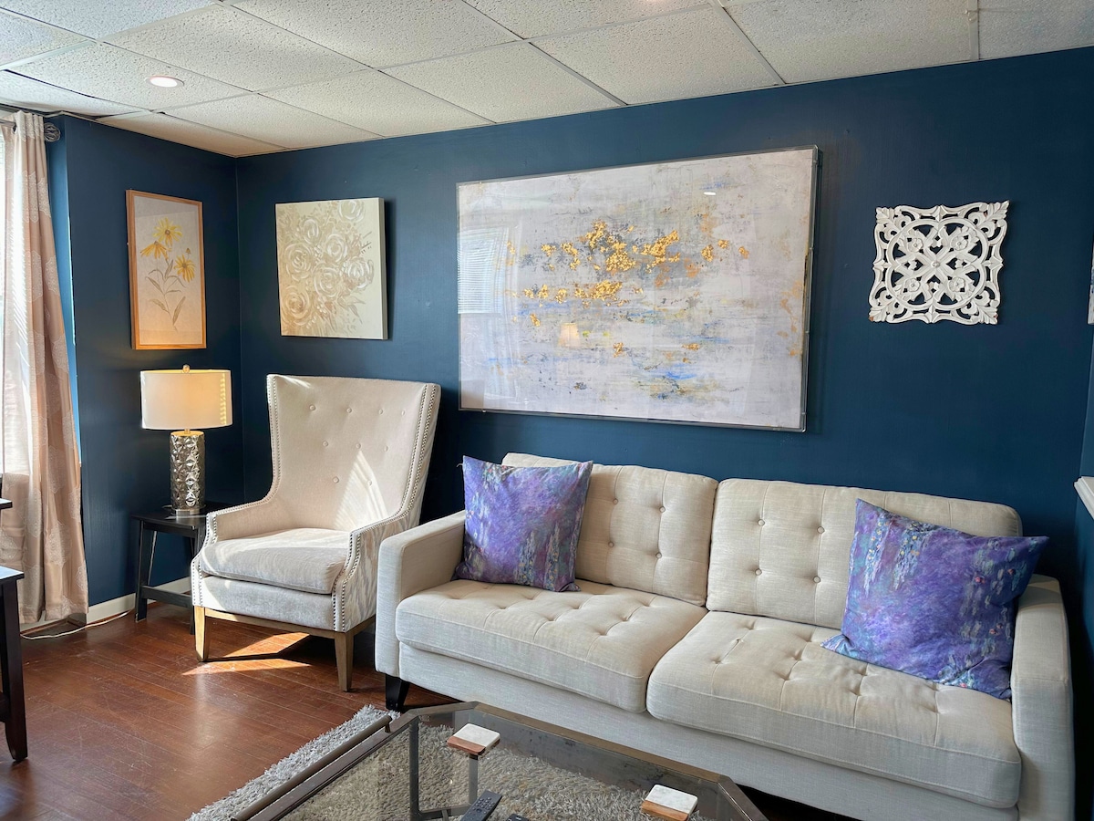 Awuzange ubone unxweme olunje. Wamkelekile kwi-Edgewater Escape, iflethi ekwi-loft ephambi kolwandle ekumgangatho ophezulu exhonywe ngokupheleleyo phezu kwetheku kwisitrato sesi-7 kwidolophu yaseOcean City. Hlala kwiveranda engaphambili okanye uphumle ngaphakathi uze ubukele izikhephe, i-dolphin, iintaka, kwaye ngamanye amaxesha amatywina aqubha ngeenyawo zeveranda. I-loft inebhedi enkulu enamagumbi amaninzi ibe isofa esezantsi iyaphuma iye kwibhedi enkulu etofotofo. Isandul 'ukulungiswa, ilungele uhambo lwakho olukhulu okanye indawo yokuhlala ethe cwaka :)