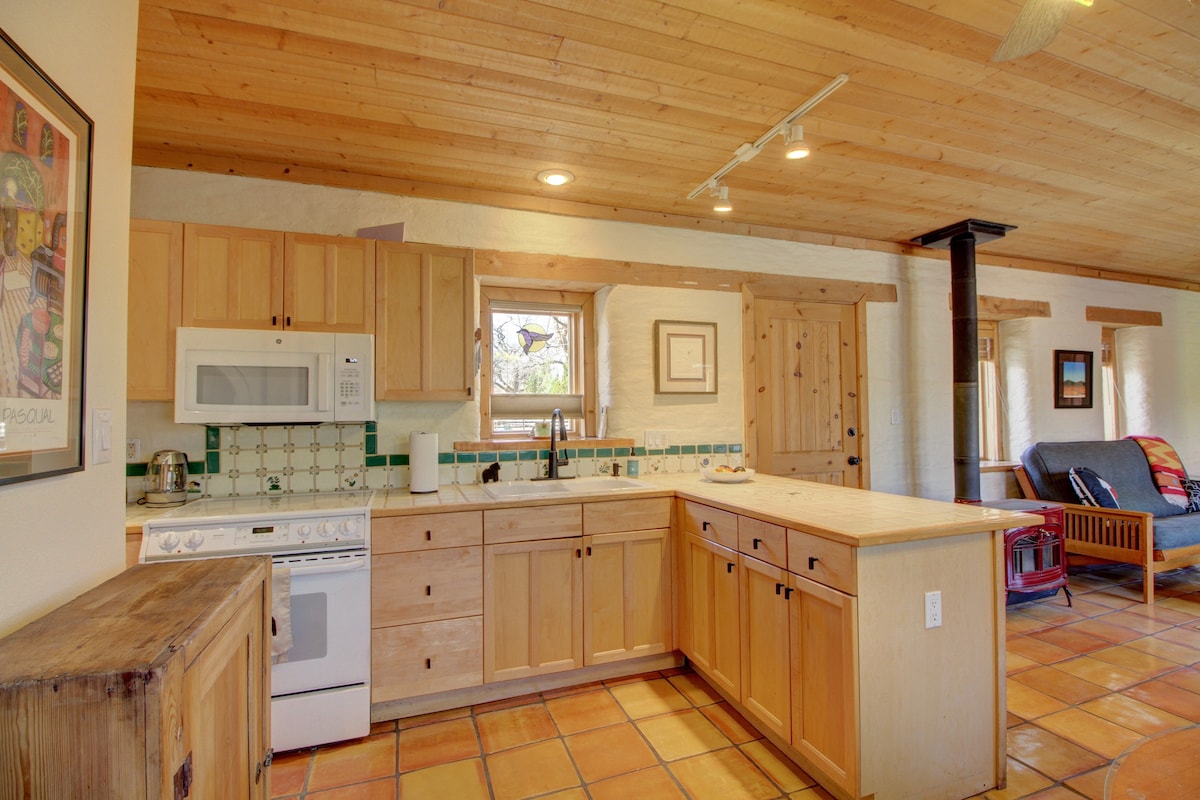 Indlu yakho encinci yabucala ikwiRio Grand forest park. Hamba, khwela ibhayisekile, okanye ubaleke kwiBosque Trail emva kwendlu ecaleni kwe-acequia (umjelo) okanye uzulule uhambe ngasemlanjeni iRio Grande uze ubukele iNtaba iSandia. Sinikezela ngekofu nekhrimu kunye neetiyi ezimnyama kunye neetiyi zemveli ezineswekile nobusi ukuze zibe mnandi. Ekhitshini kukho ifriji epheleleyo, ioveni/i-microwave nesitovu. Izinto zokupheka, ioyile yezitya, iviniga nezinongo, iiglasi zewayini nokungakumbi. Lala kwibhedi enkulu elalisa kamnandi.