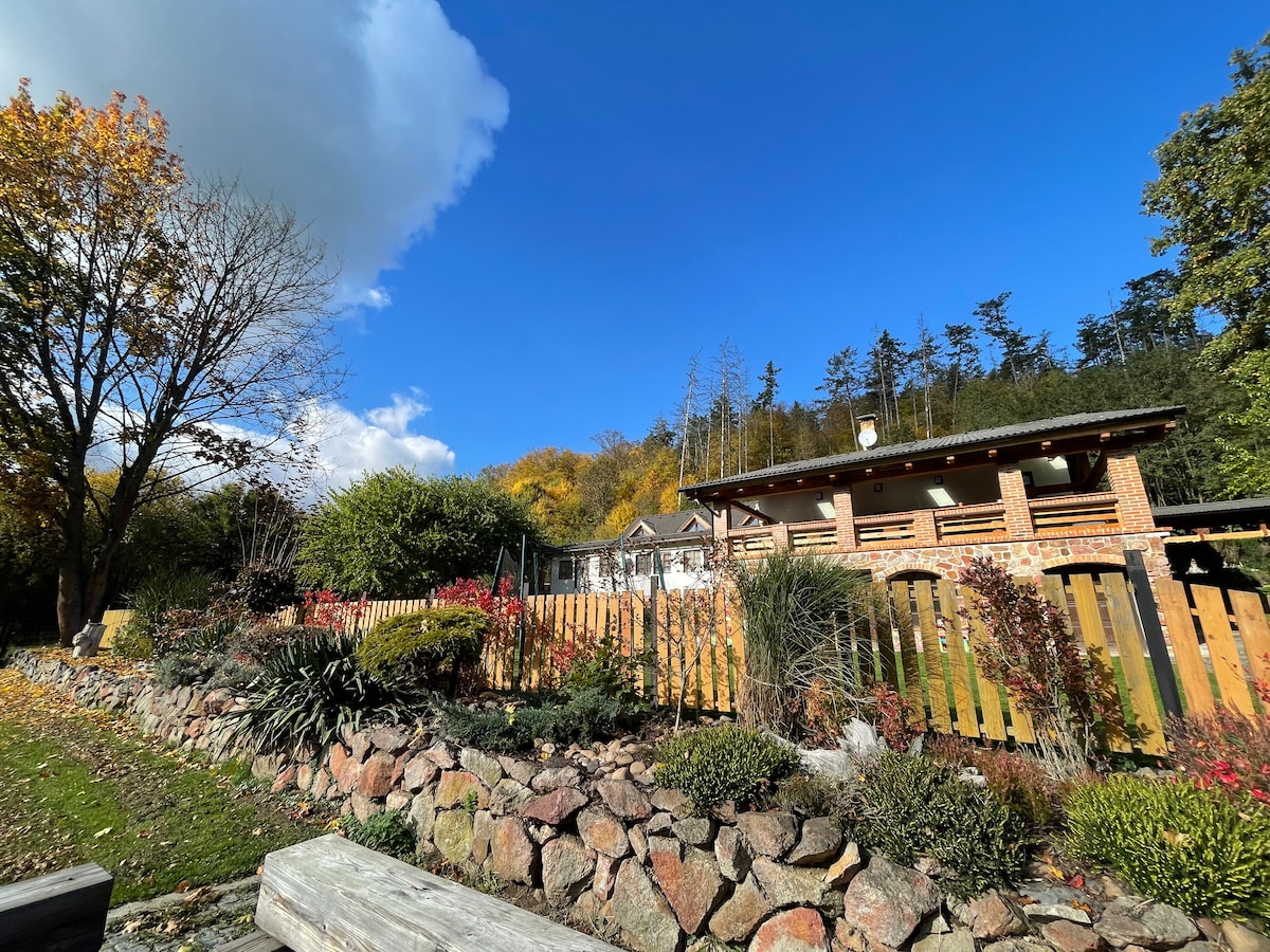 Wonke umntu angaphumla endlwini yethu. Kukho amagumbi okuhlambela ayi-2, igumbi labantwana elivulekileyo, igumbi elinesofa, ikhitshi elinendawo yokuhlala enendawo yokubasa umlilo. Igadi enkulu, indawo yokubasa umlilo (kuquka iinkuni), indawo yokosa inyama, iindawo zokuhlala phandle. Ikhitshi lixhotyiswe ngazo zonke izinto eziquka umatshini wokwenza ikofu nento yokugaya, i-induction, ioveni. Kufuphi: Jindřichova skála, Castle Valdek, Tok, Jordan, .... Ukuhamba ngeenyawo nokuhamba ngebhayisekile. Ukuqubha edamini laseZaskal. Siqeshisa ngendlu kuphela xa singaphandle kweCzech Republic.