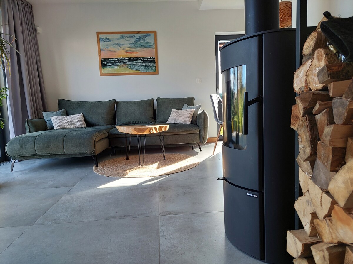 I-Bielawy House yenzelwe ngokukhethekileyo ukuphumla. Inepuli yale mihla, engenayo i-chlorine (ioksijini esebenzayo) enebhanka yokumasaja, i-jacuzzi enabantu abayi-6 ne-sauna ekumgangatho ophezulu. Igadi evulekileyo iquka ibala lokudlala, itafile yeping pong, iibhari zeenkawu, i-trampoline nebala le-volleyball! Ngaphakathi endlini, iindwendwe zinokuphumla ecaleni kwendawo yokubasa umlilo, zidlale ibhola ekhatywayo etafileni, iXbox okanye i-poker. Ikhitshi elinezinto ezifunekayo lineemeko ezintle zokupheka. Kufuphi, kukho amachibi namahlathi amahle