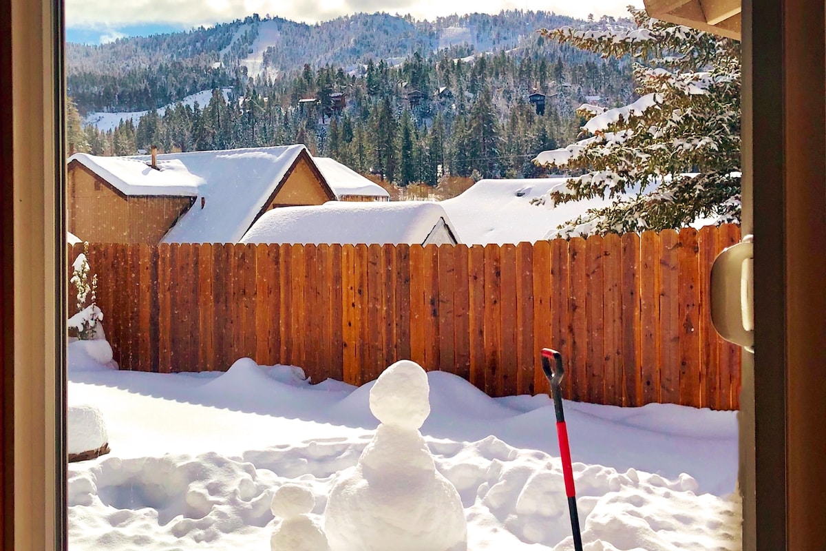 Spend your Holidays in the Mountains and enjoy the snow in Big Bear!🐻 Coyote Grove is your perfect year-round mountain getaway! Our cozy chalet is a block from the zoo, golf course, dining, & the free Red LineTrolley, offering easy access to both ski resorts-skip the parking hassle! After a day on the slopes, unwind by making s’mores in the wood-burning fireplace or the gas fire pit in our fully fenced patio. The Village is 5 minutes away with plenty of shopping and dining options.