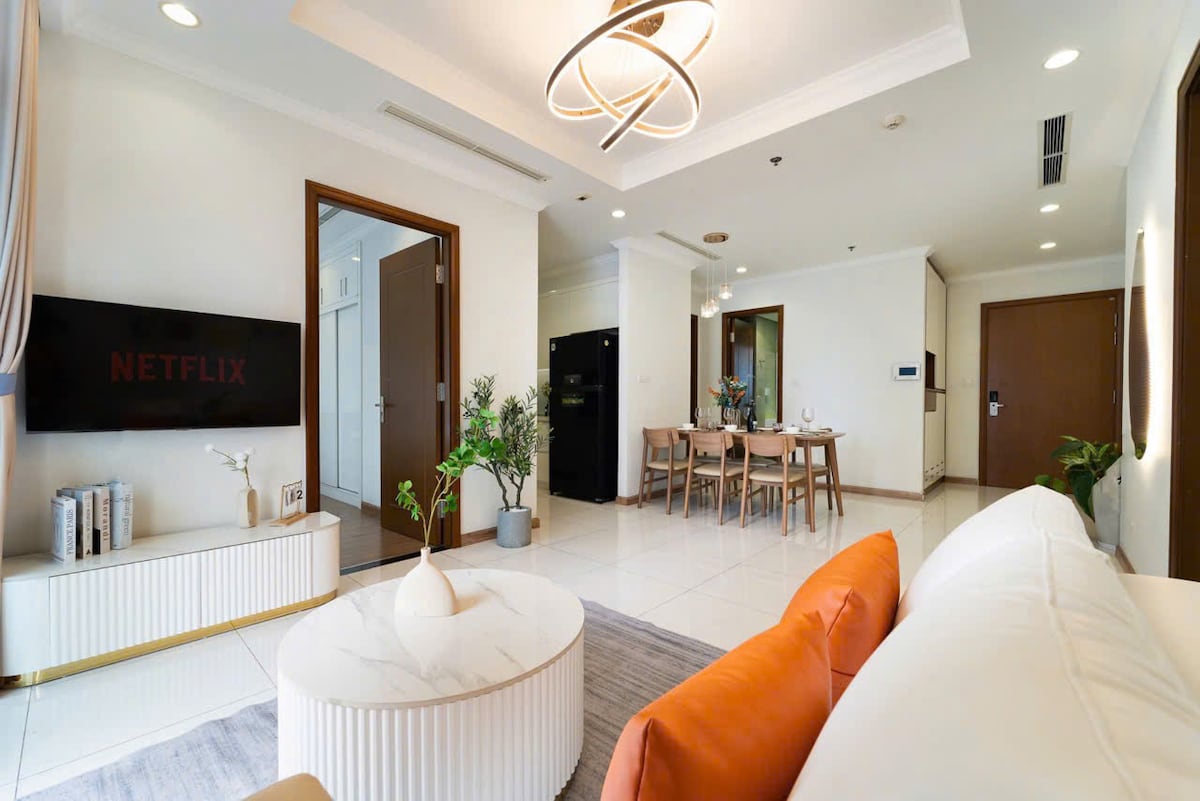 🌟 Quan2 Thao Dien에 위치한 우리 아파트는 모던하고 세련된 디자인으로, 편안함을 겸비한 완벽한 휴식 공간을 제공합니다. 🏡 숙소 특징 •넓고 아늑한 공간: 2개의 침실과 2개의 욕실이 있어 가족이나 친구들과 함께 여유롭고 편안하게 머무실 수 있습니다. •완비된 주방: 필요한 조리 도구가 모두 갖춰져 있어, 직접 요리하며 더욱 특별한 식사를 즐기실 수 있습니다. •최신 편의시설: 에어컨, Wi-Fi, 세탁기 등 다양한 편의 시설이 완비되어 있어, 더욱 편리하고 쾌적하게 머무실 수 있습니다. •7박 이상 숙박하실 경우 침구와 수건을 교체해드립니다. 🌆 주변 상권 •Vincom Mega Mall이 바로 옆에 있어 쇼핑과 외식이 편리합니다! 스타벅스, 맥도날드, K-Market, Win마트 등 다양한 브랜드와 레스토랑이 입점해 있어 필요한 모든 것을 쉽게 이용하실 수 있습니다.