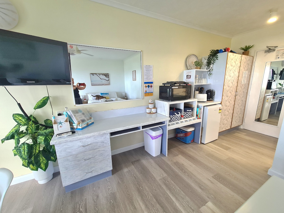 Kwi-resort kukho iindawo ezivulekileyo ezinengca onokuphumla kuzo, iipuli ezintathu zee-resort onokuzonwabela, i-bbq esetyenziswa ngumntu wonke ziindwendwe ezinokusetyenziswa simahla kunye nebhari nendawo yokutyela. Igumbi lethu liquka zonke izinto zelinen, iitawuli kunye nezinto zokucoca ezisisiseko. Ikhitshi elingaphakathi egumbini line-toaster, iketile, i-microwave i-hotplate kunye ne-cutlery esisiseko/i-crockery kunye nezitya. Njengoko kungekho sinki ngaphakathi ekhitshini, kukho ibhafu enokudilika enokusetyenziswa kwizitya.