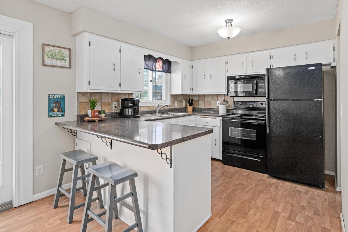 Yonwabela umxube ofanelekileyo wokuthi zava nokusebenza kakuhle kwiholide yethu yaseAndover! Eli khaya lithe gabalala linendawo yokuhlala ekhanyayo, evulekileyo elungele ukuphumla nabahlobo nentsapho. Ikhitshi elinento yonke nelinendawo evulekileyo lenza ukutya kube ngumoya, enoba upheka isidlo okanye ukutya okulula. Ufuna ukusebenzela ekhaya? Indawo yeofisi ekhethekileyo inezinto eziyimfihlo nezitofotofo. Yonwabela ubulula nobuhle bale ndawo njengeholide yakho enoxolo okanye iholide esebenzayo!”
