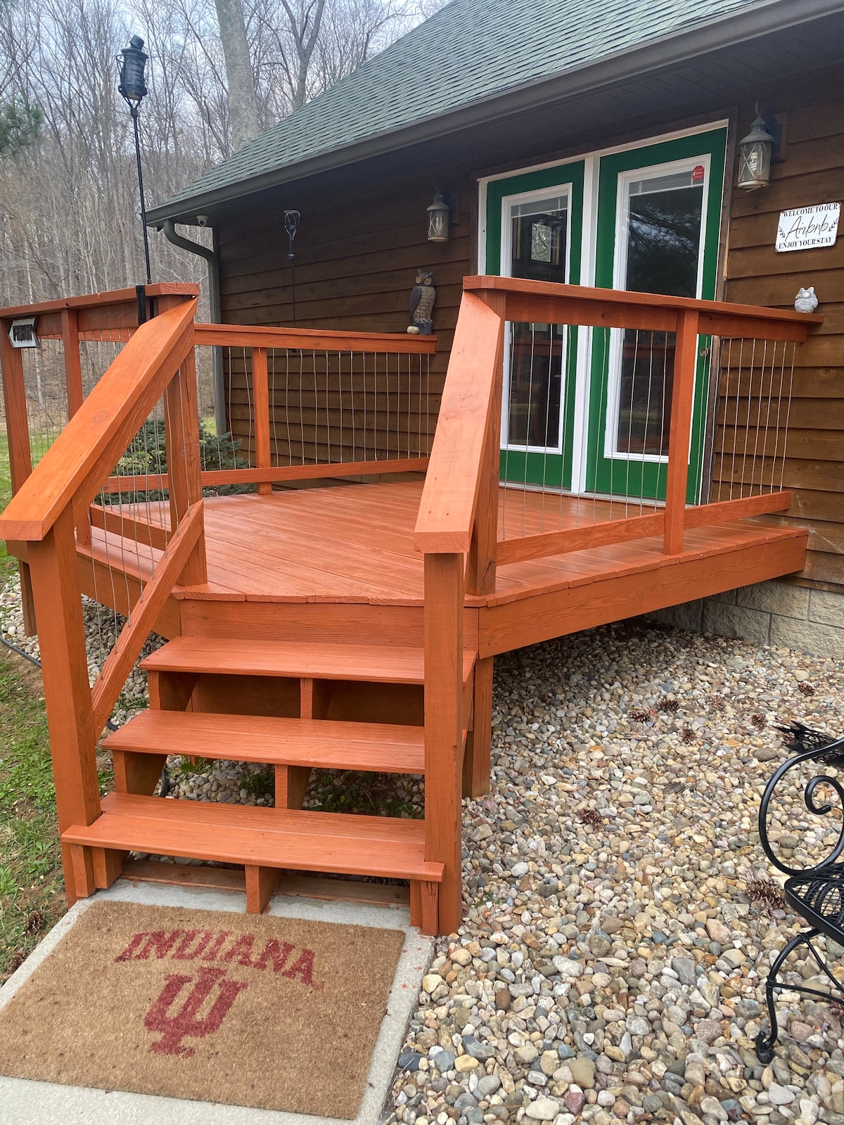Hideaway Hollow is a cozy, private guest suite attached to the owner's home. Please read the entire listing before booking. Located on the north side of Bloomington, it is just 15 minutes from downtown Bloomington, the IU stadium, and an hour from Indianapolis. Nestled in the forest, the space offers a covered porch with a private entrance, a spacious living room, a kitchenette, and a master bedroom with a full bath.