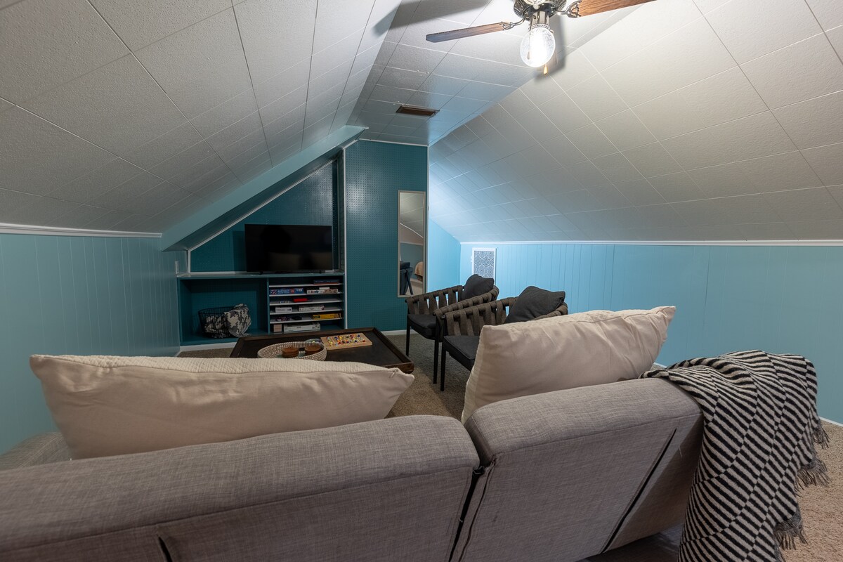 I-Mid Century Modern. Ukulungiswa okupheleleyo. Lo ngumama osegumbini elingaphantsi kwiflethi okanye indlu ekwicomplex. Inegumbi lokulala elivuyisayo elinebhedi enkulu, itafile yokunxiba, ikhabhathi, ikhabhathi. Igumbi leRumpus linendawo yokubasa umlilo yombane, iRoku TV, izitulo ezitofotofo, isofa yokulala nedesika exhonywe eludongeni. Kukho imidlalo yebhodi, iincwadi neepuzzle. Ibhari ephezulu yokutyela. Ikhitshi lixhotyiswe kakuhle. Ibhafu/indawo yokuhlamba impahla ineshawa enkulu, ithobhi ephezulu, umatshini wokomisa impahla, iitawuli, njl. Kukho umatshini wokuhlamba nowokomisa impahla, ibhodi yokuayinela, iayini.
