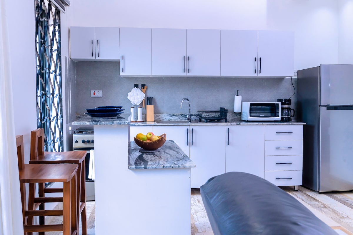 Nice, spacious, fully furnished 2-Bedroom apartment in Kisasi Bahai road, Kampala all to yourself!Cleanliness is top priority, all beddings and towels are white and the apartment is cleaned 6days a week at no extra cost!Located Just steps from the Bahai Temple, and only 5KM drive from Acacia Mall. 3 balconies to enjoy the views. Kitchen fully fitted with mordern appliances. Smart 55 inch TV! Lush green gardens outside and a pergola perfect for making memories. The flowers were chosen with love!