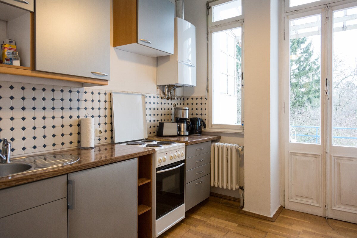 Le flethi ikufutshane nekliniki yaseyunivesithi ibe yeyona ndawo ifanelekileyo yokuphumla kuye nabani na ohamba naye okanye otyelela izalamane. Ngokuqinisekileyo, ezinye iindwendwe nazo zamkelekile! Indawo yendalo yaseKottenforst ikufuphi ngeenyawo ibe ikumema ukuba uhambe ngeenyawo uze uhambe ngebhayisekile. Iflethi okanye indlu ekwicomplex idityaniswe kakuhle, umbindi wesixeko ungafumaneka kwimizuzu emalunga neyi-15 ngebhasi. Awukwazi ukupheka eflethini, kodwa iivenkile zokutyela neevenkile zokutyela zikufuphi.