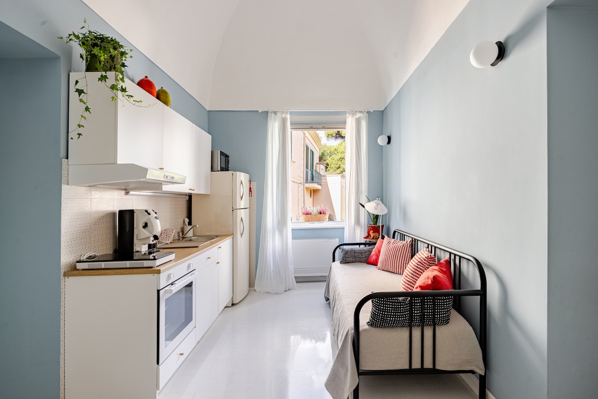 I-Blue ekhanyayo yiflethi ekwintliziyo yesixeko, kwinkundla eqhelekileyo yeminyaka yee-1800, enegumbi lokulala, ikhitshi, igumbi lokuhlambela kunye nendawo enkulu yangaphandle. 50 m ukusuka kwisitrato sokuthenga kunye namathambeka akhokelela elwandle; 500 m ukusuka kwi circumvesuviana (metro) kunye nendlela yemoto; I-2.5 km ukusuka kwisikhululo sikaloliwe kunye ne-1.5 km ukusuka kwiZiko le-Oplonti. Ungafikelela lula: Pompeii, Naples, Sorrento, Vesuvius kunye neziqithi ezikufutshane. Ukusuka apha uza kuhlala embindini wayo yonke into!