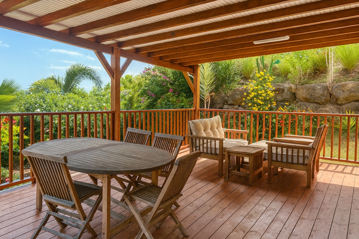 Sinezindlu ezinevaranda zamaplanga eziseBouillante ezijonge uLwandle lwaseCaribbean, apho unokufumana khona unxweme phantsi komoya. Kufuphi nemithombo eshushu ye-sulphurous (imizuzu eyi-6 yokuhamba) ukuphumla okuphezulu, imizuzu eyi-10 ukusuka kulwandle lwaseMalendure (edumileyo phantsi kwamanzi egcina i-Cousteau) kwaye kufutshane namanxweme amahle kunye neendlela ezininzi zokunyuka intaba kwihlathi lemvula. Ingoma yamasele iza kuhamba ubusuku bakho, umboniso welanga otshonayo uza konwaba amehlo akho !